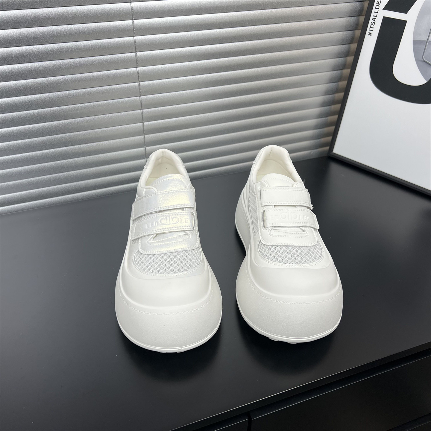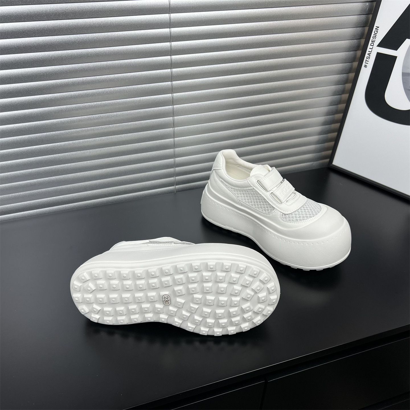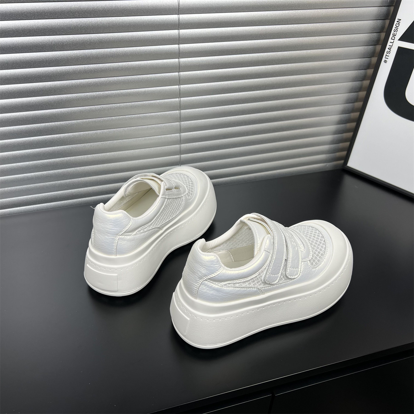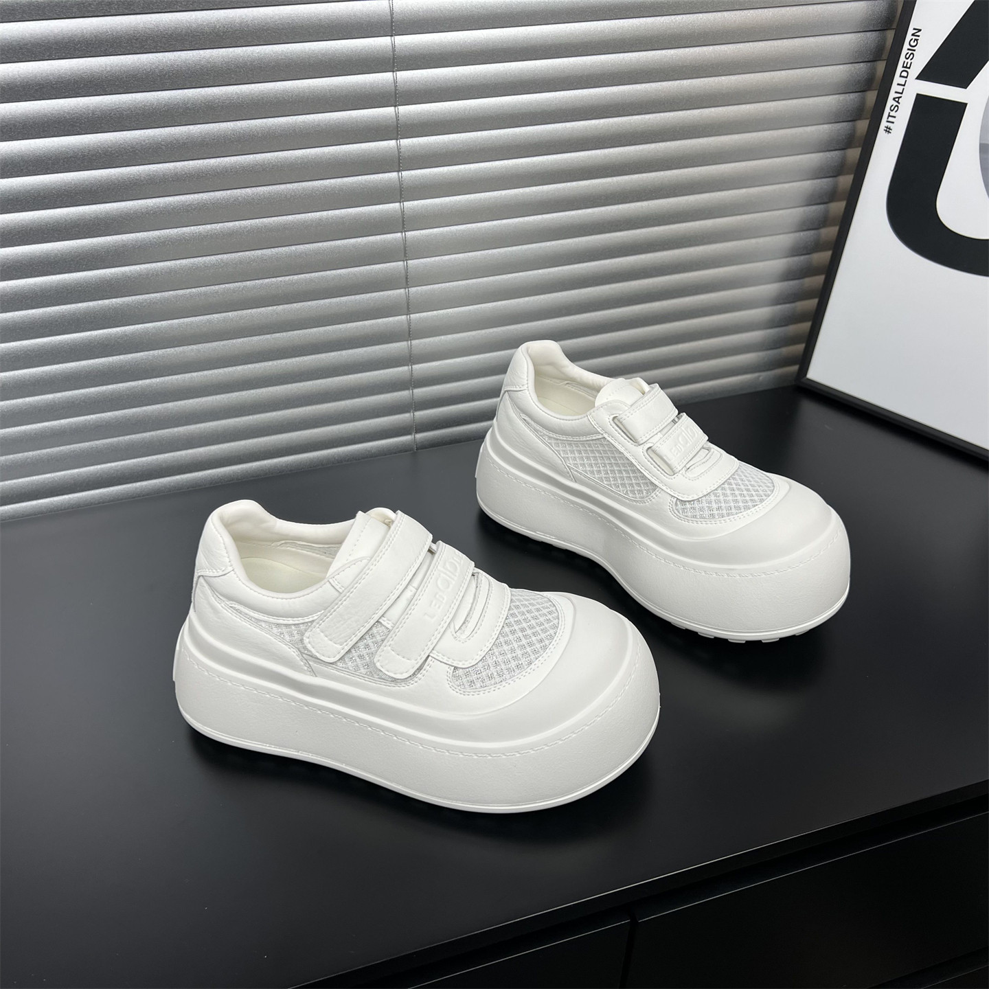 真皮厚底魔术贴小白鞋女2026春夏新款增高网面休闲板鞋丑萌大头鞋