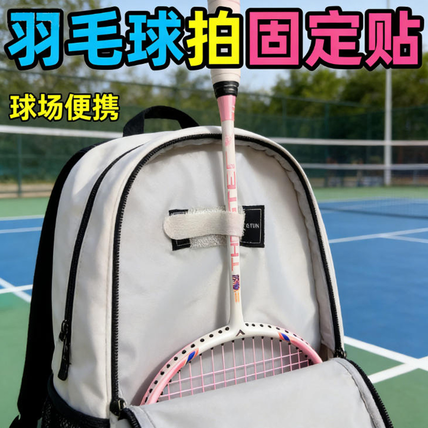 背包内羽毛球拍直立摆放自粘背胶魔术贴运动双肩包侧兜网球拍防晃动固定带鱼竿棒球杆收纳防移位掉落雌雄贴条