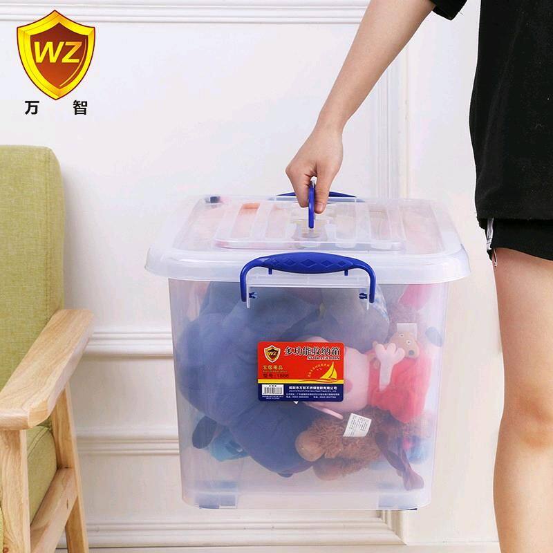 加厚塑料透明收纳箱整理箱带盖滑轮胶箱大小号储物箱收纳盒置物箱
