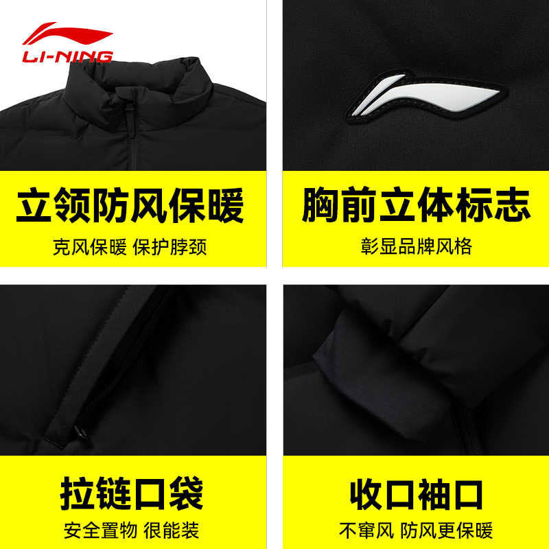 李宁短款羽绒服男士冬季新款立领袄子保暖防风青少年潮流加厚外套