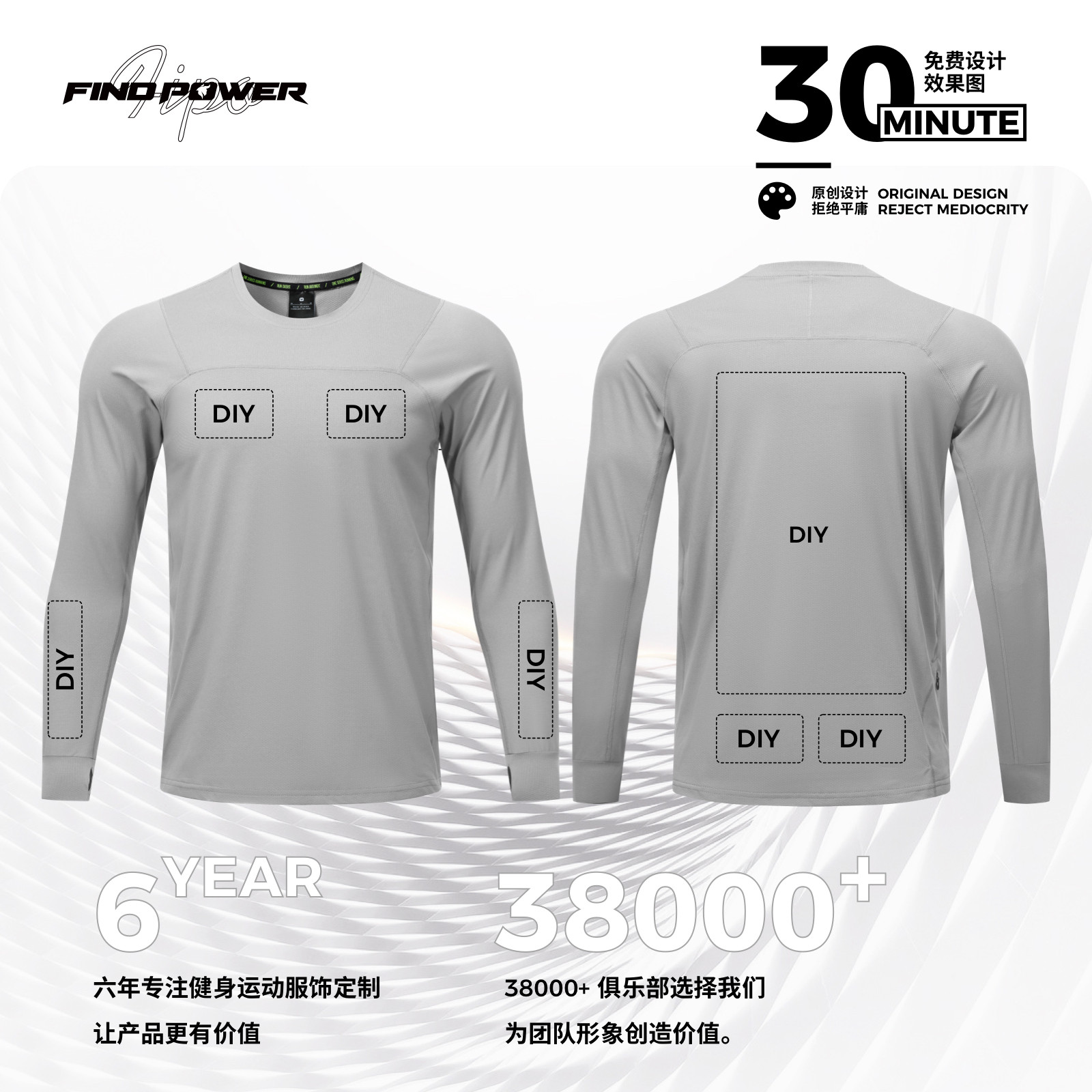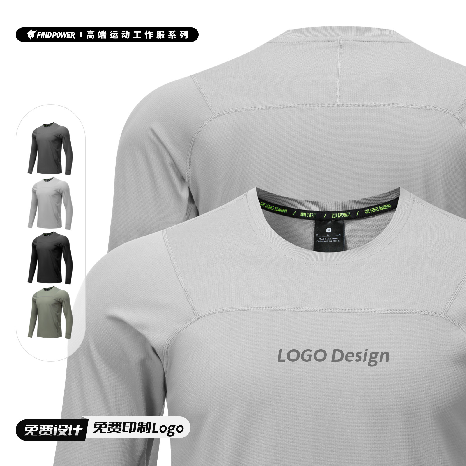 速干长袖T恤定制印logo圆领上衣紧身衣健身运动工装订教练工作服