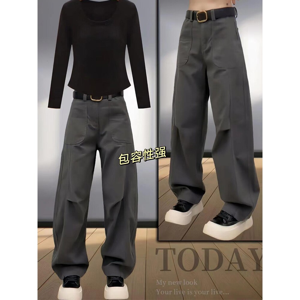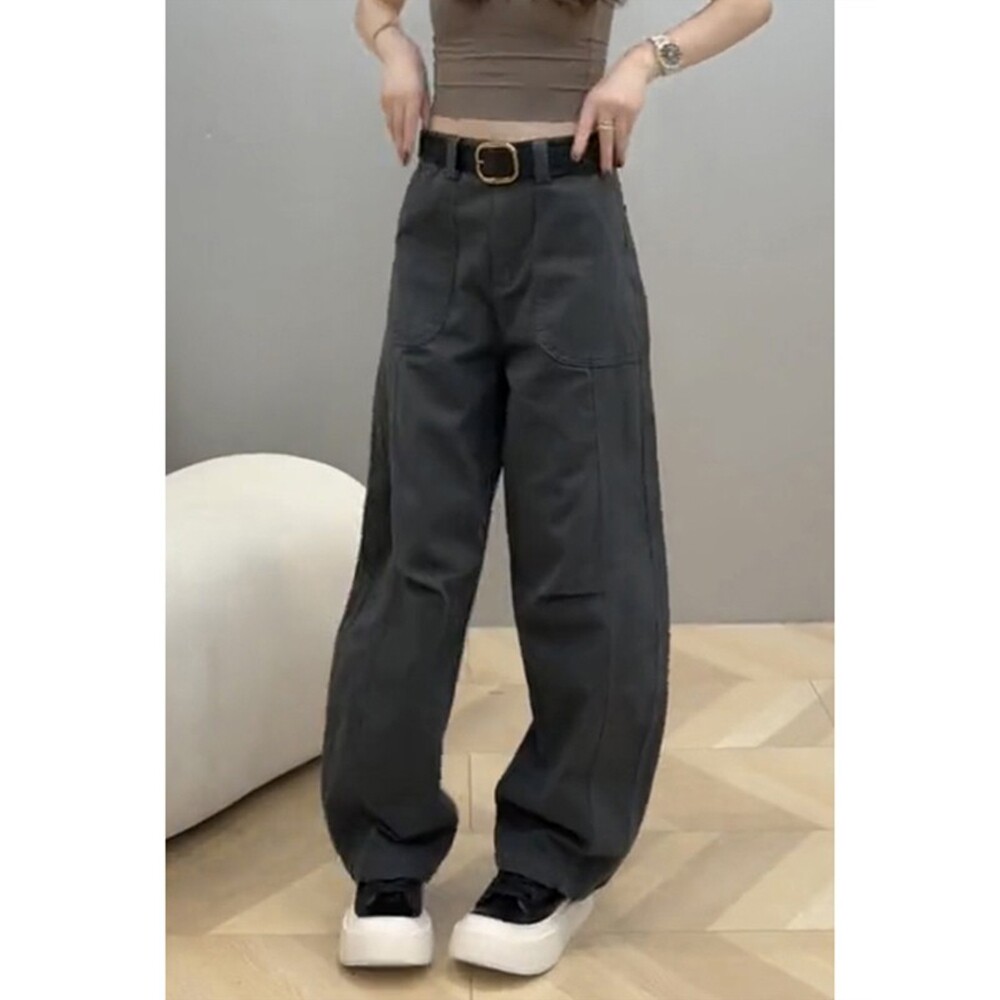 小个子工装牛仔裤女款2024新款春秋胖mm显瘦大码直筒高腰阔腿裤子