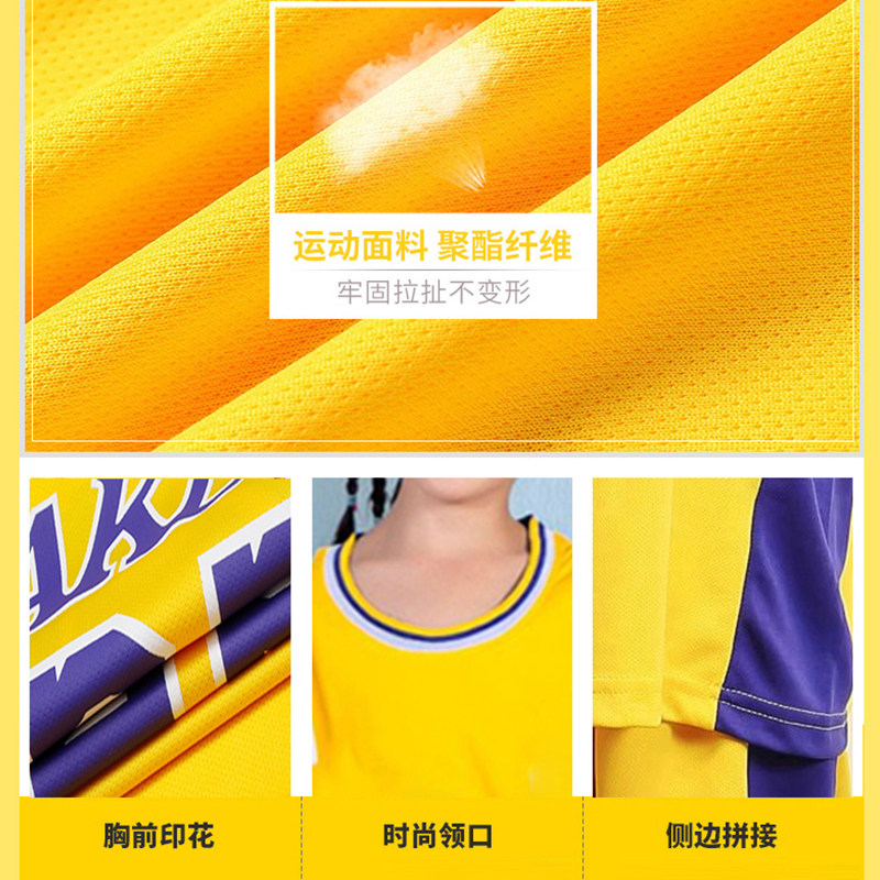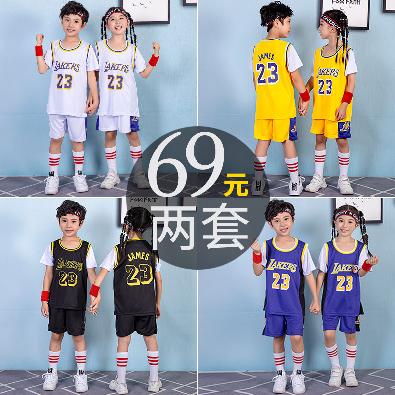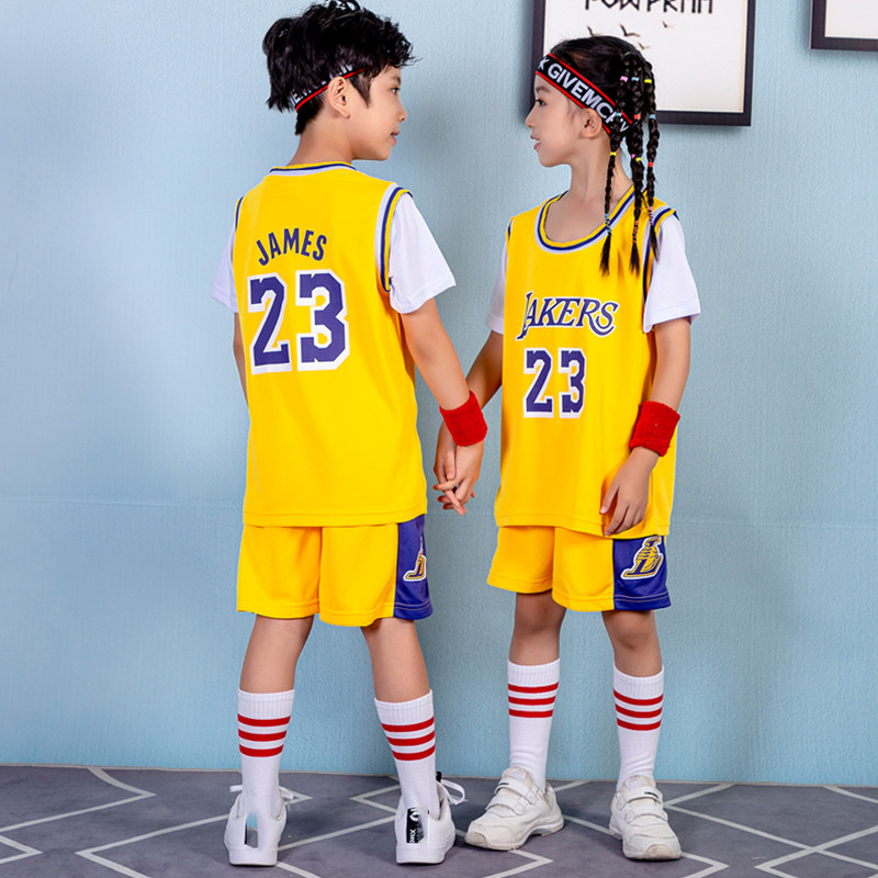 儿童篮球服男童夏湖人23号詹姆斯球衣女小学生科比训练服男孩套装