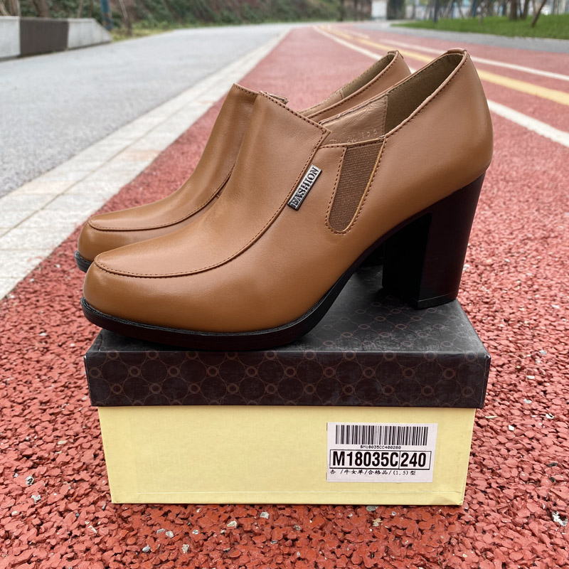 断码处理金猴正品女士皮鞋高跟鞋真皮粗跟短靴秋冬百搭款皮鞋035C