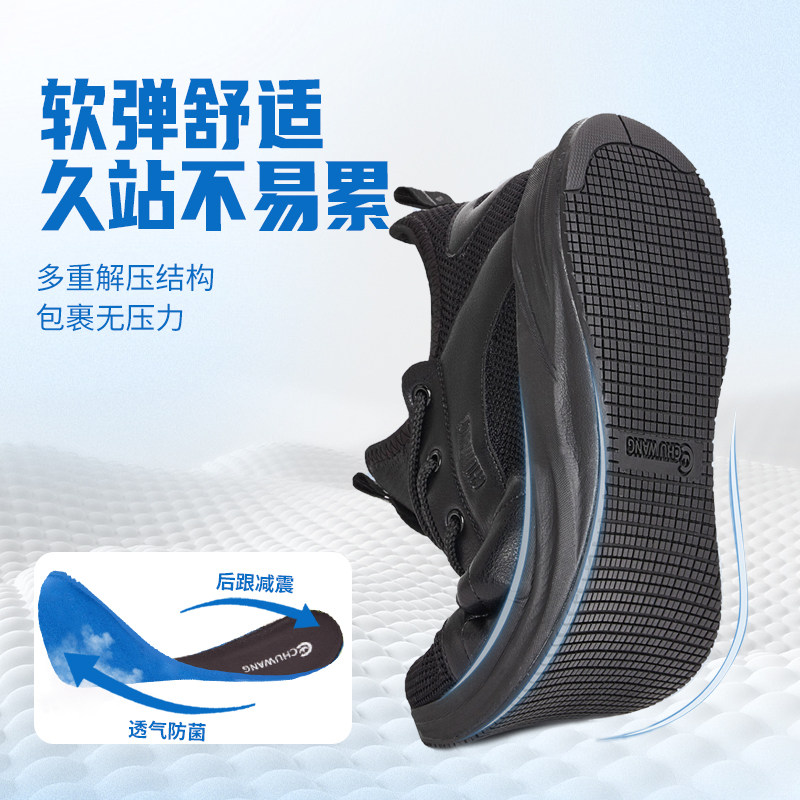 厨王厨师鞋防滑休闲鞋透气网面时尚减震轻便跑步运动鞋男新款夏款