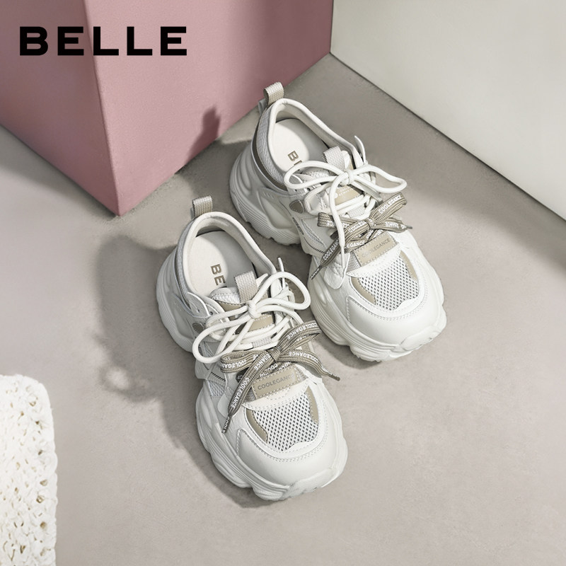 百丽透气网面厚底增高老爹鞋女26夏季新款运动休闲鞋子F6J1DBM6