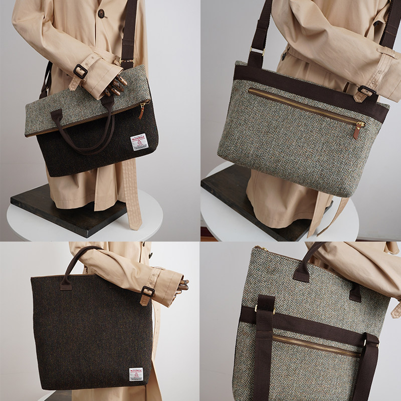 Harris tweed可折叠斜挎包大容量上课通勤出行手提托特包单肩挎包