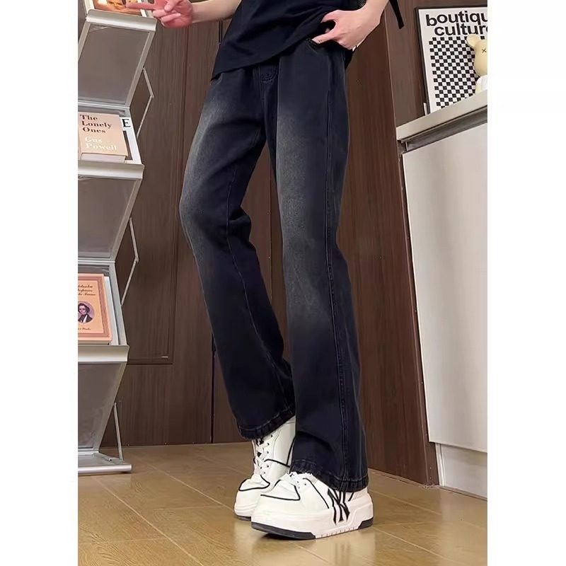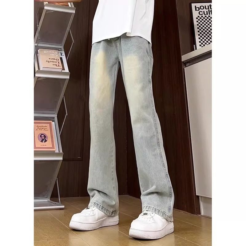 松紧腰抽绳微喇牛仔裤男款美式cleanfit裤子直筒修身高街休闲裤潮