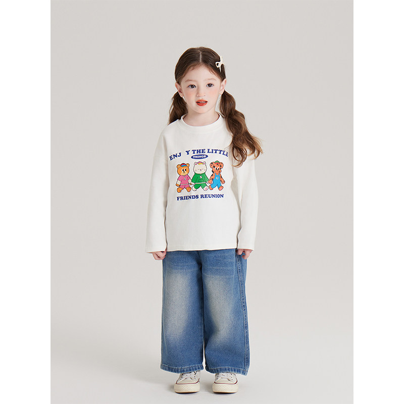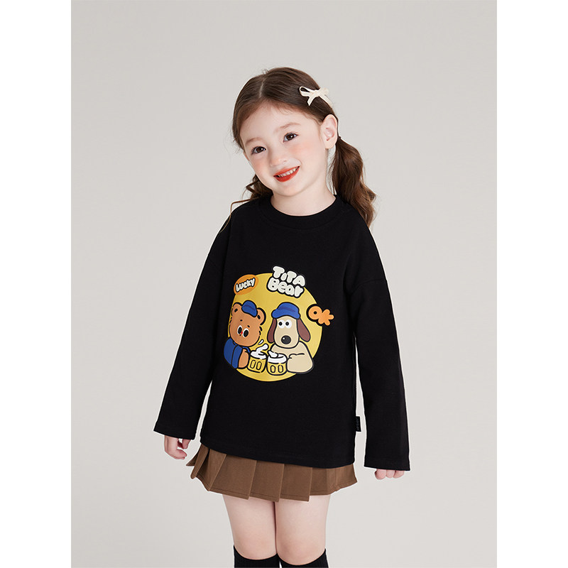 Amybaby女童上衣春季2026新款经典韩系宽松卡通纯棉百搭长袖T恤