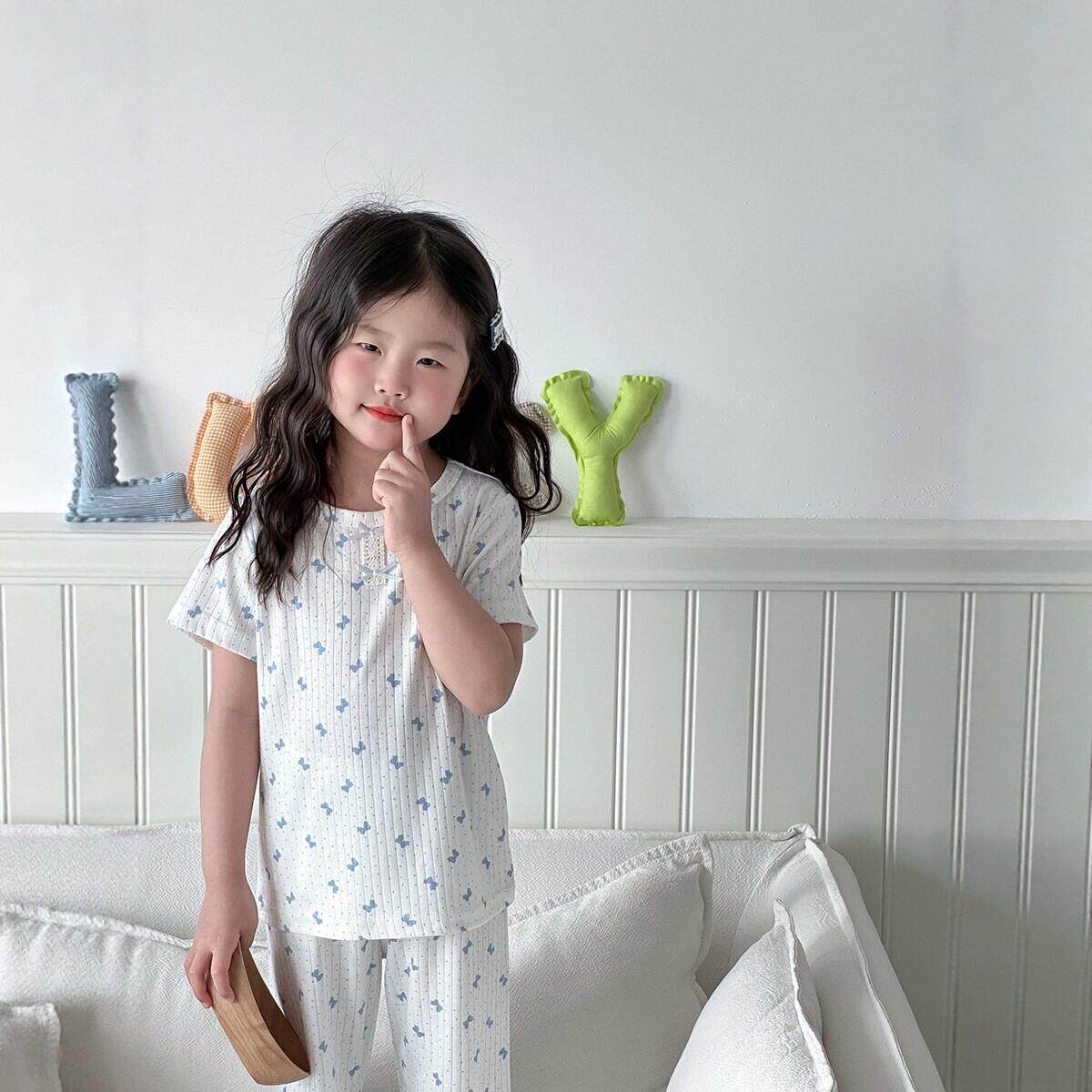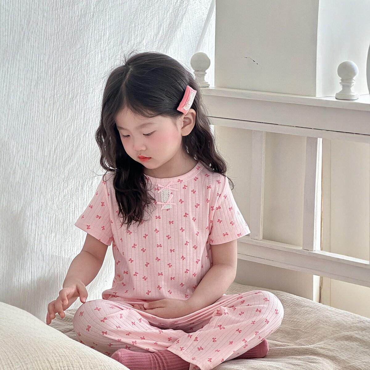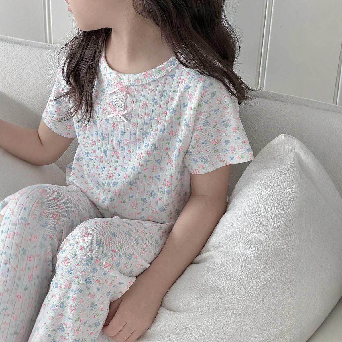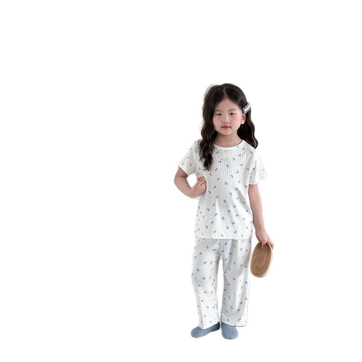儿童夏季碎花家居服套装女童短袖长裤薄款空调服纯棉睡衣可外穿