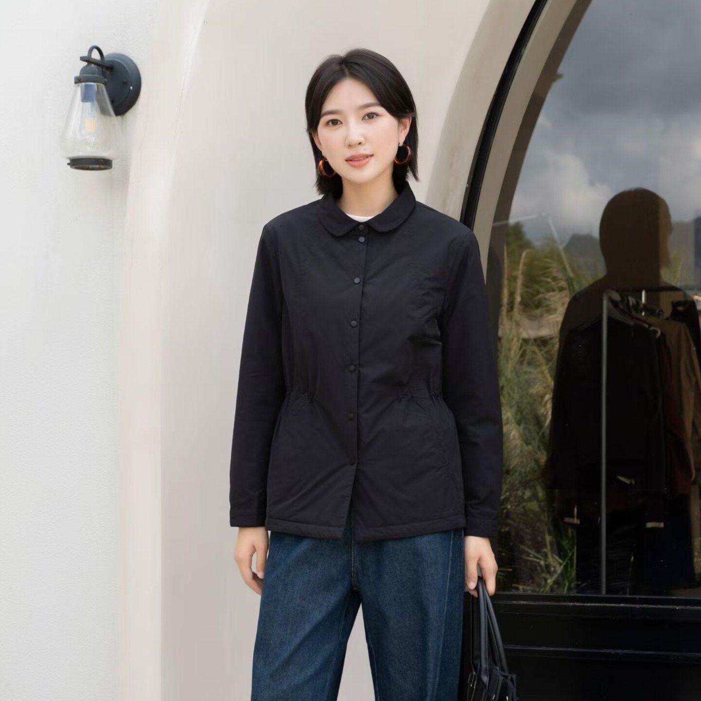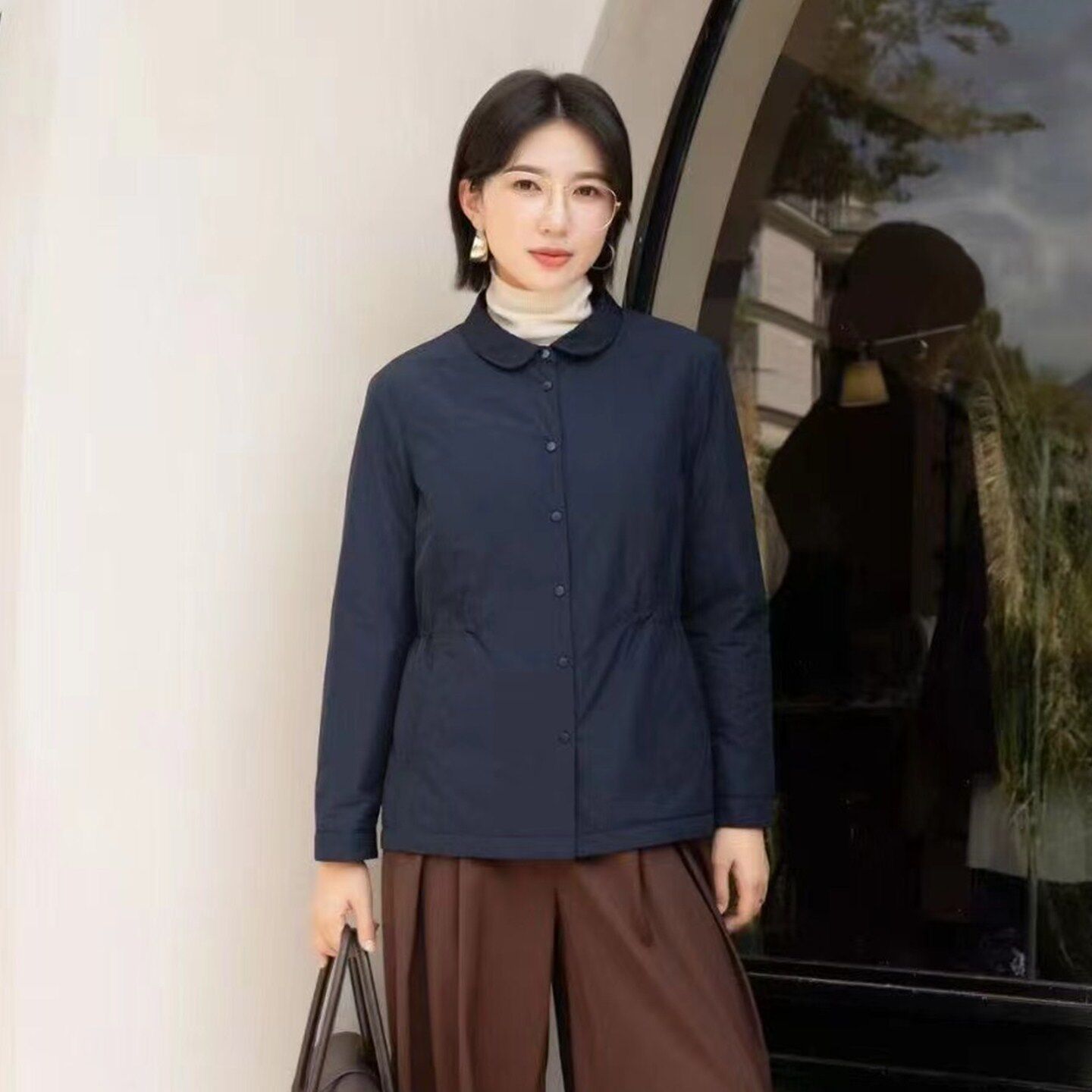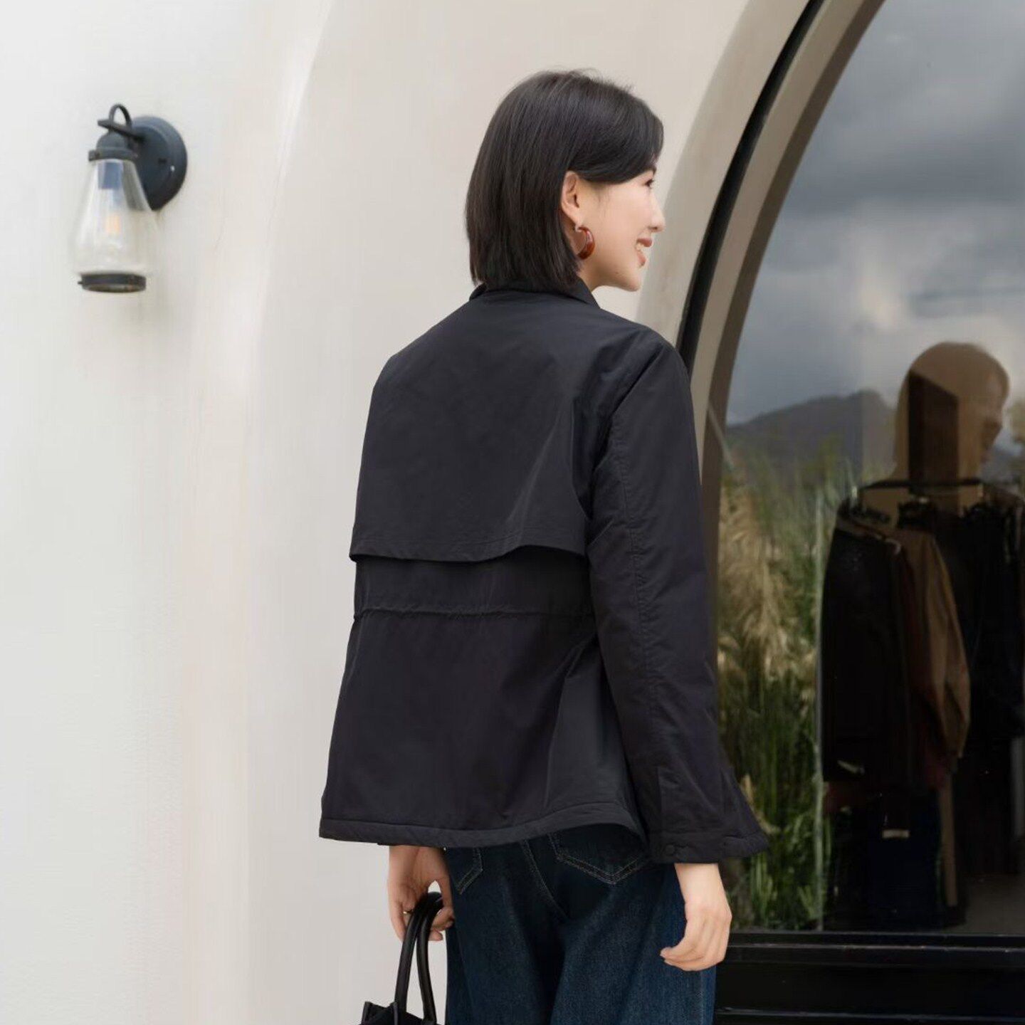 YUN韫2026春季新款女装翻领单排扣通勤收腰薄棉防风外套 风衣6022