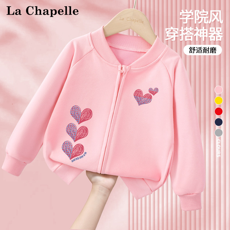 拉夏贝尔女童棒球服外套2026新款儿童春装上衣可爱女宝宝薄款开衫