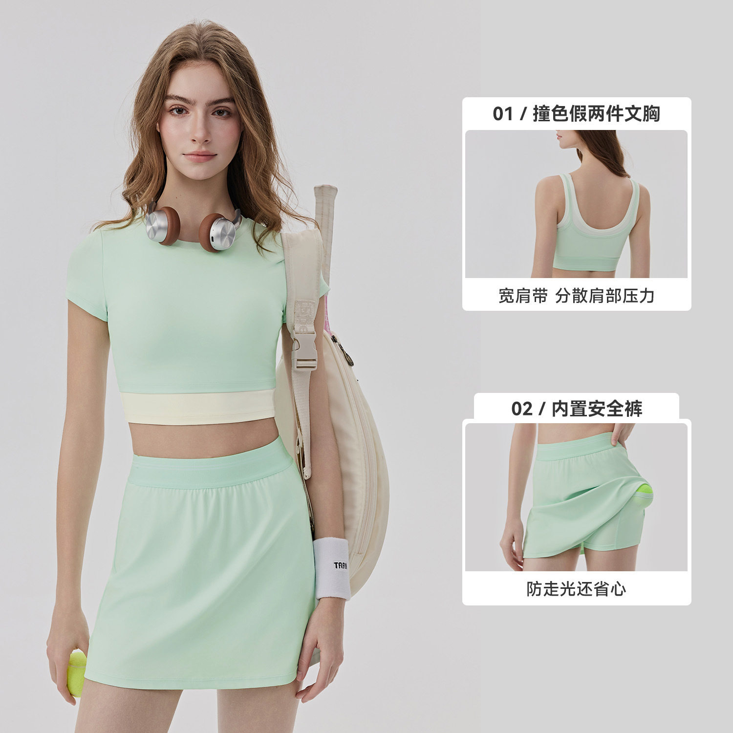 外贸新品网球运动带胸垫撞色凉感两件套防走光普拉提瑜伽服套装女