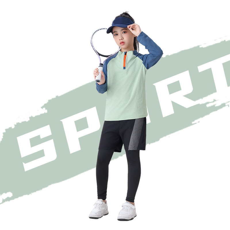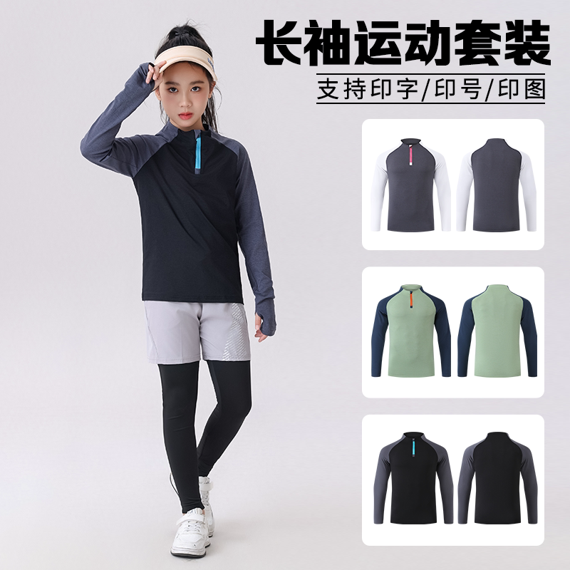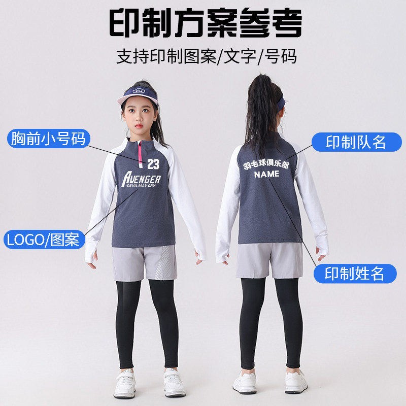 儿童羽毛球服网球训练服春秋女童运动跑步健身套装儿童成人运动服