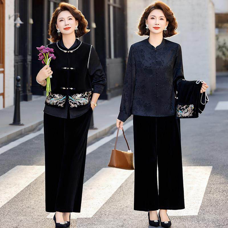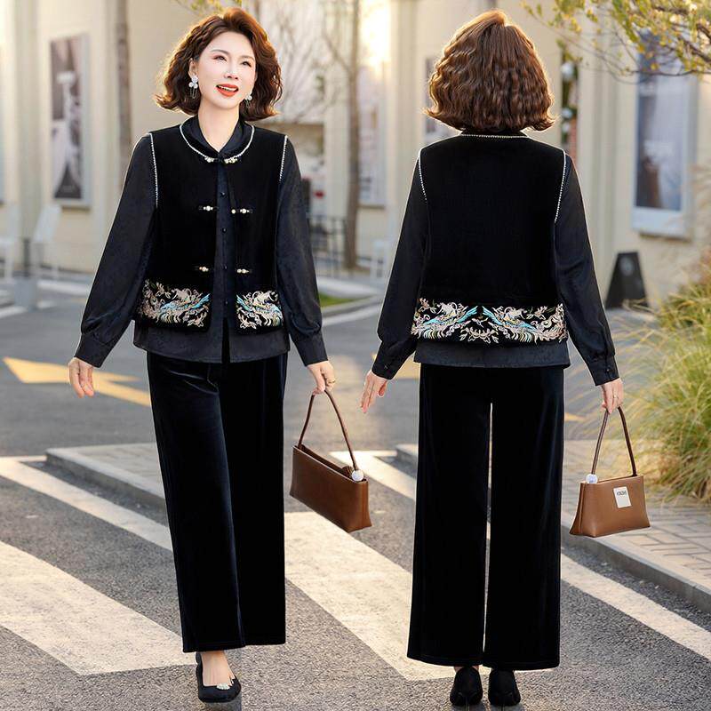 国风妈妈春装三件套2026新款中老年春秋刺绣马甲外穿女洋气新中式