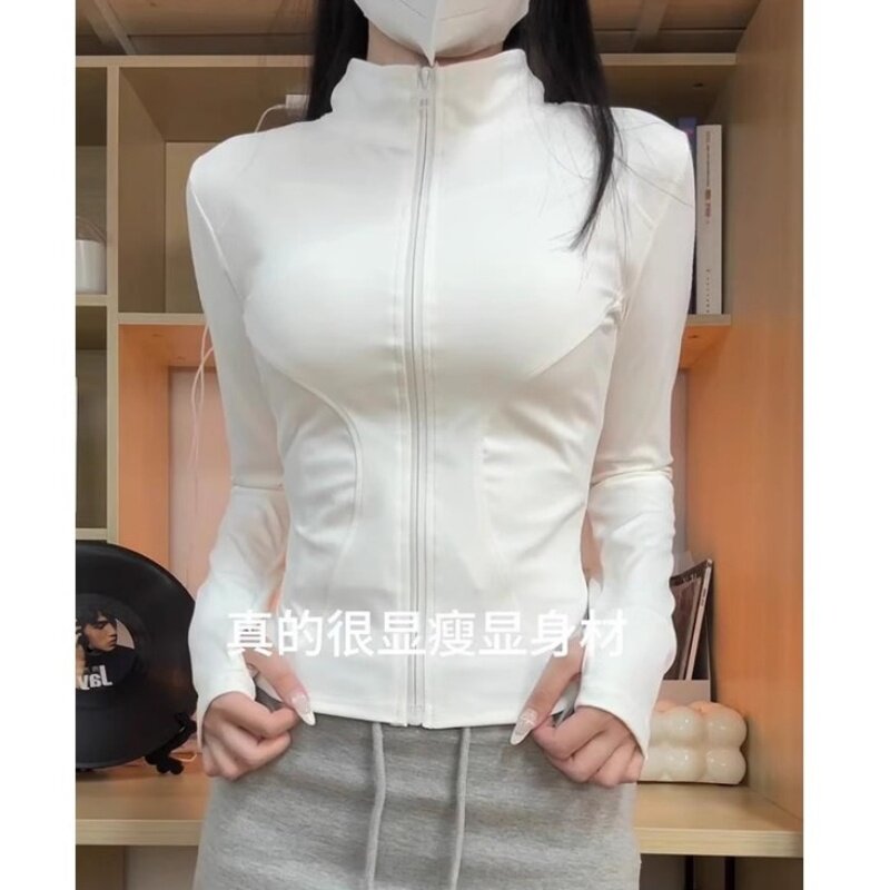 冰丝白色防晒衣女款外穿夏季新款轻薄透气修身收腰瑜伽服运动上衣