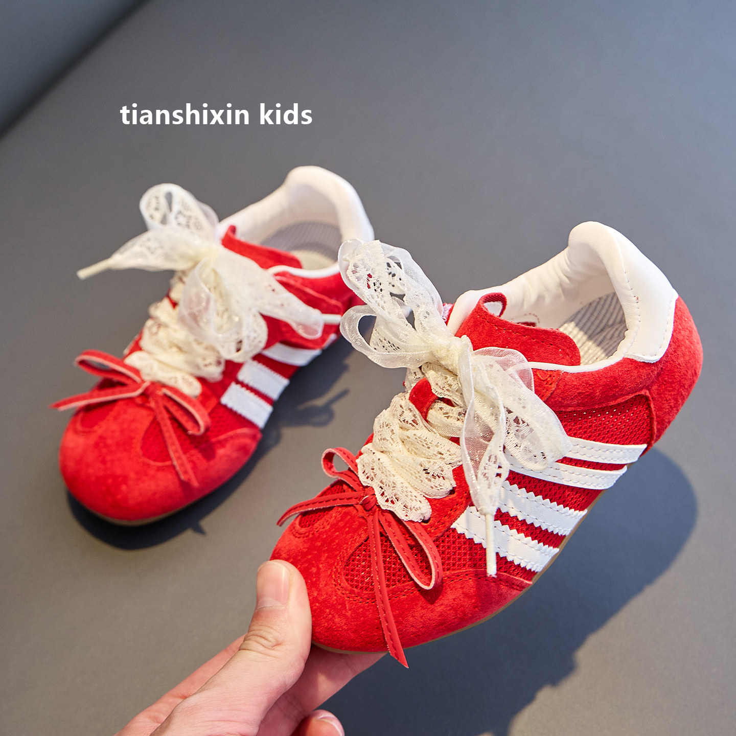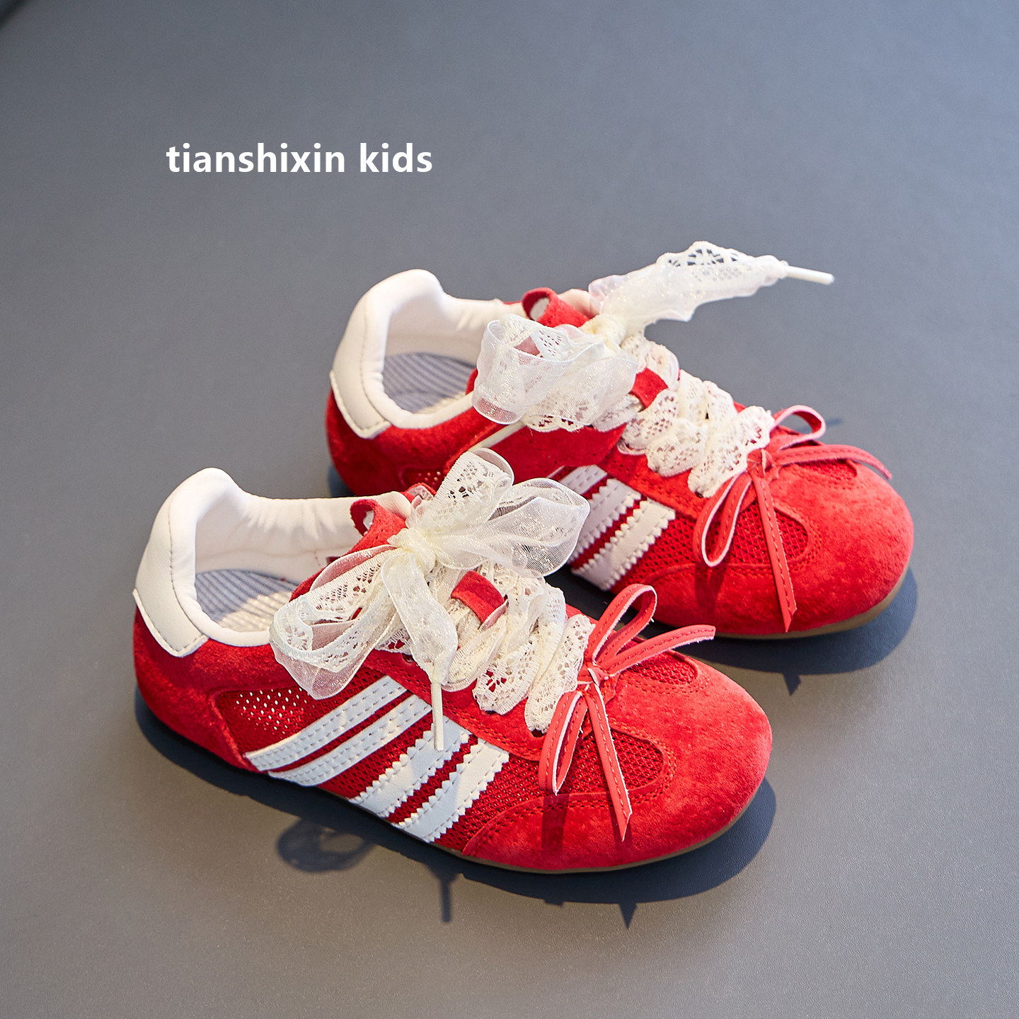 女童鞋子红色夏季薄款2025新款儿童运动鞋网面透气女孩德训鞋软底