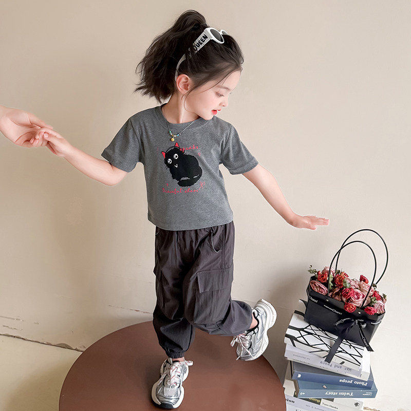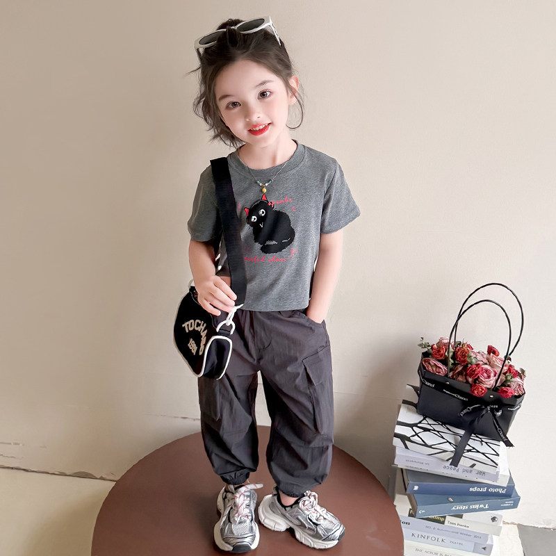 女童短袖T恤套装夏季2026新款儿童t薄款衣服夏装小女孩运动两件套