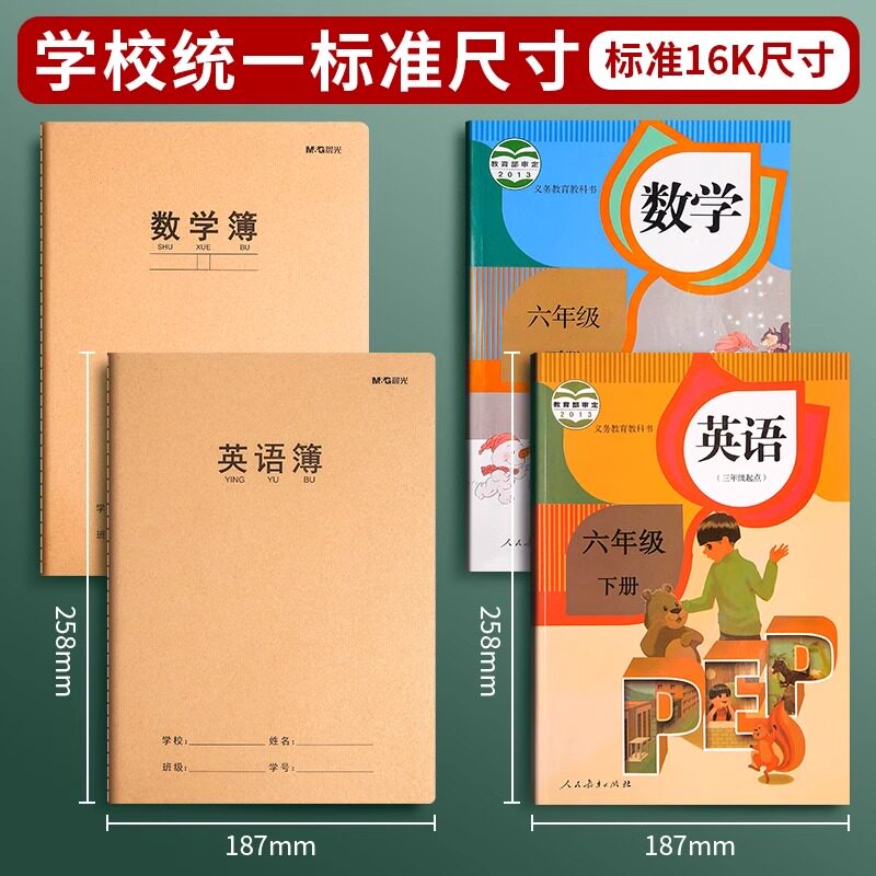晨光牛皮纸英语本16k标准练习薄加厚初中生英文抄写四线三格上册数学作文本中学生语文小学生三年级作业本子