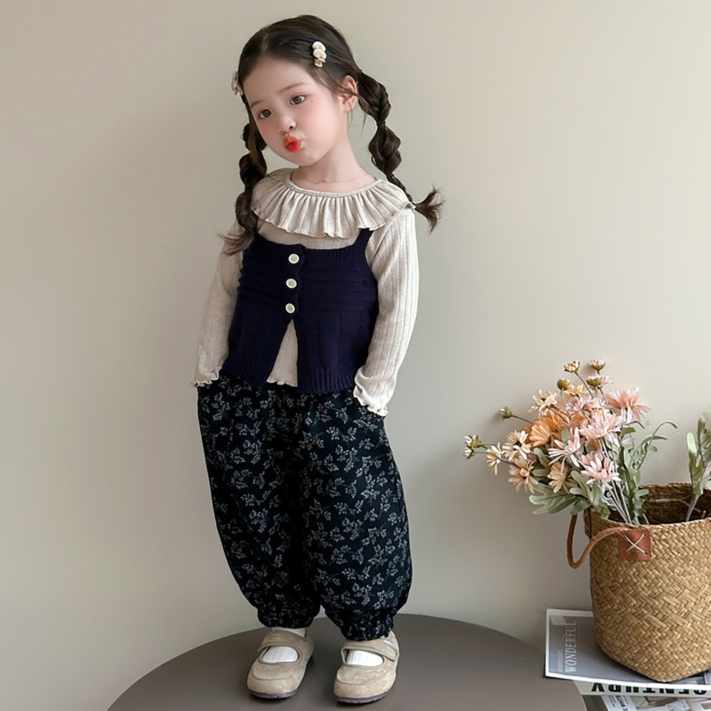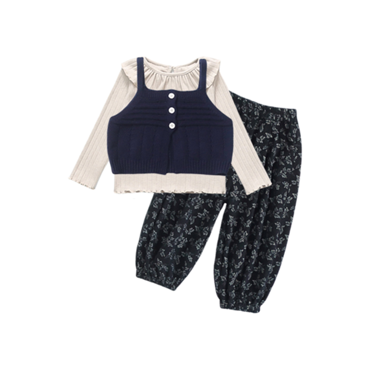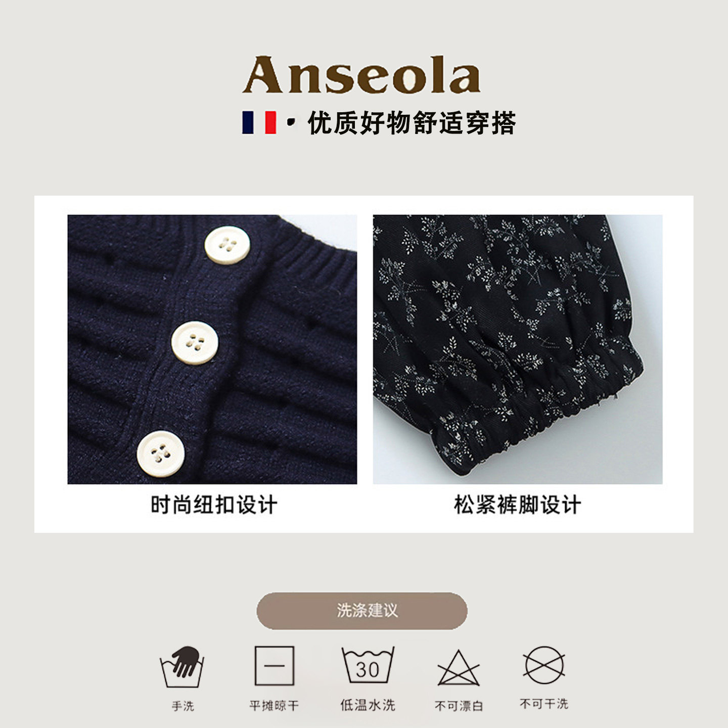 法国ANSEOLA女童春秋套装中小儿童女宝宝洋气毛衣马甲裤子三件套