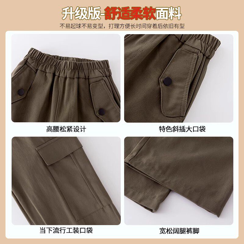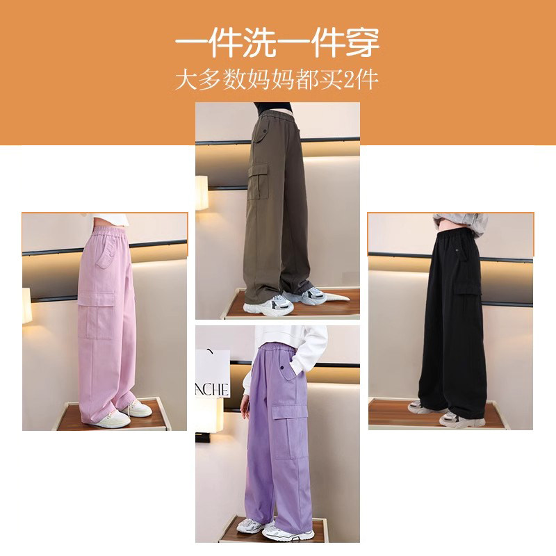 女童工装裤裤子春秋2026儿童休闲运动裤女大童阔腿裤黑色紫色洋气