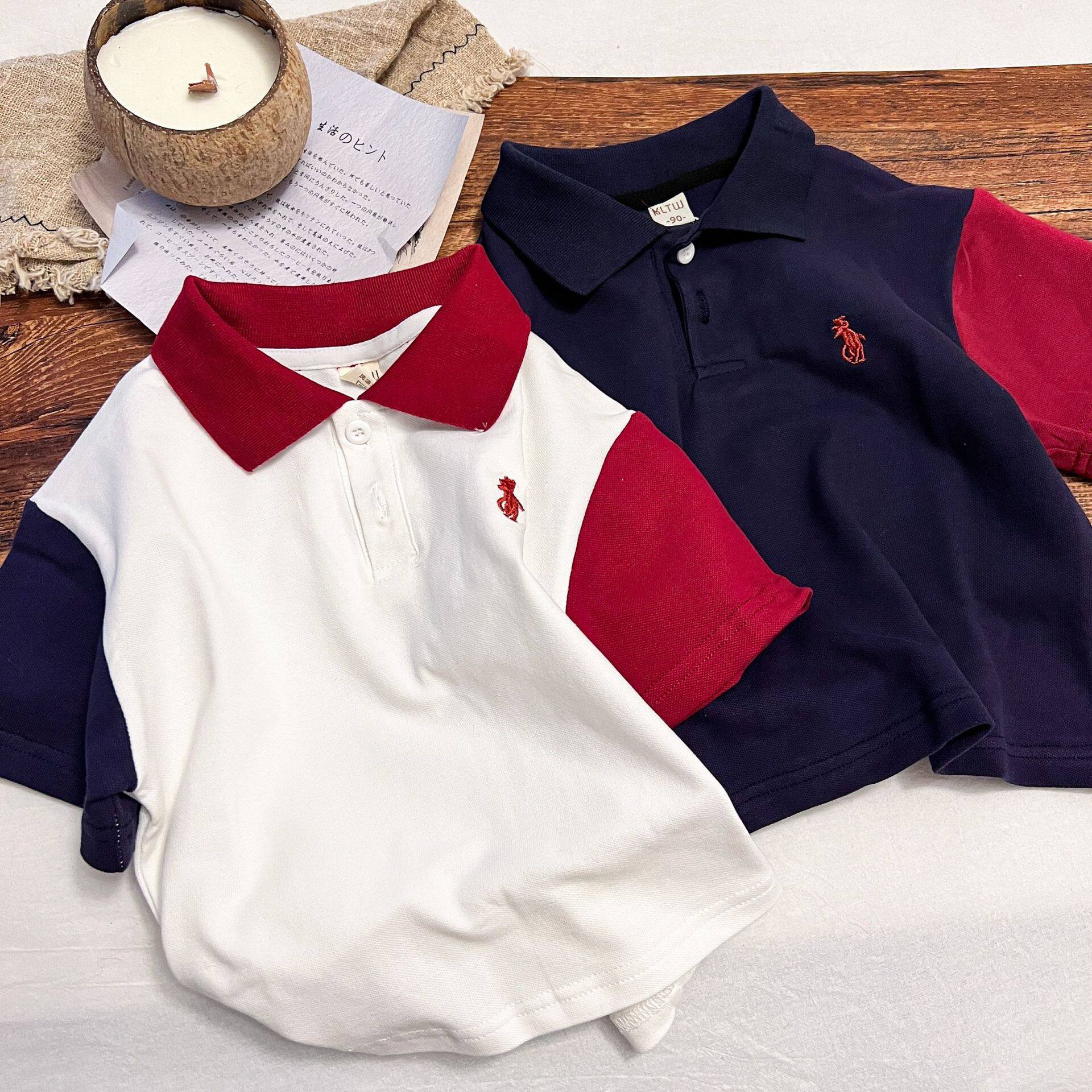 宝宝短袖polo衫2026夏季新品男女童撞色套头衫翻领纯棉刺绣T恤潮