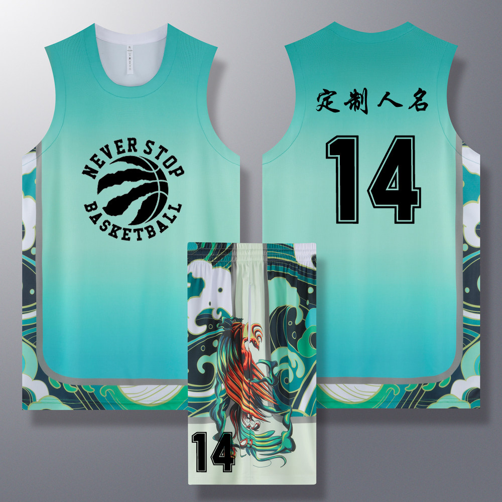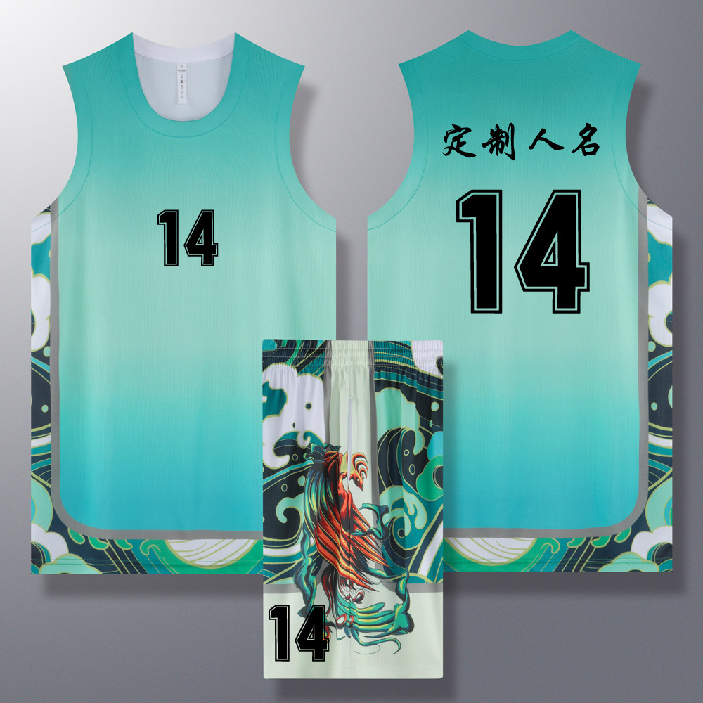 成人儿童篮球服套装球衣夏季背心比赛训练队服定制印字A014绿色