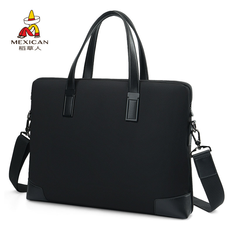 稻草人帆布手提包男商务包休闲电脑包轻便斜挎包牛津纺简约公文包
