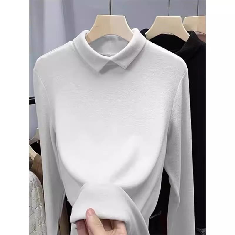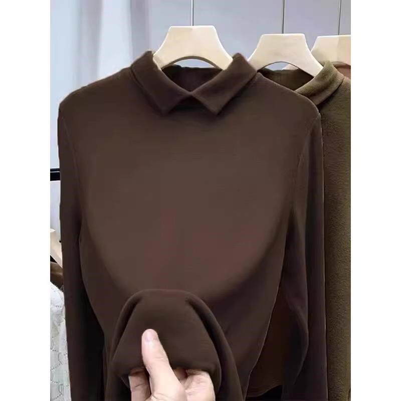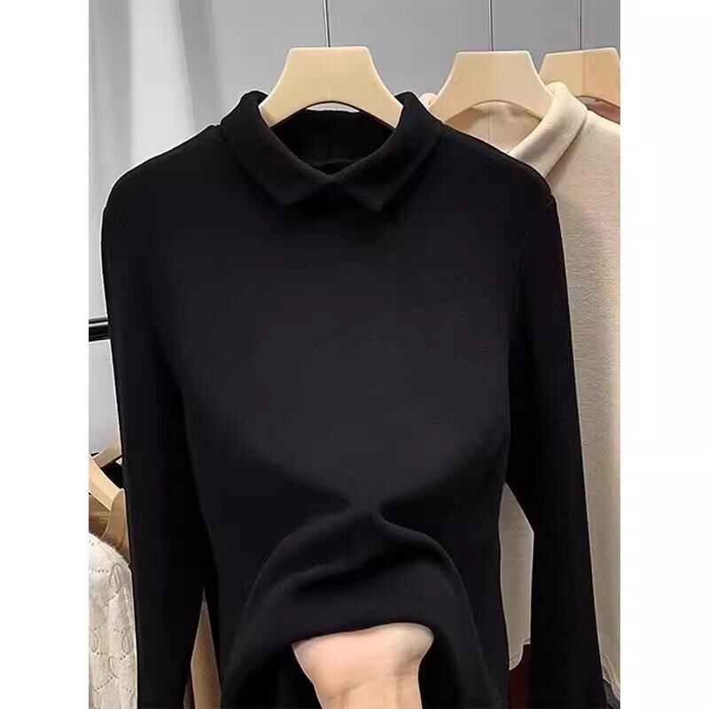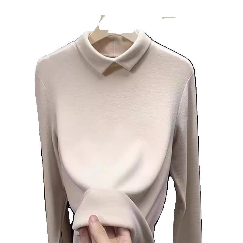 有领加绒长袖T恤女内搭可外穿秋冬加G绒加厚德绒打底衫翻领上衣