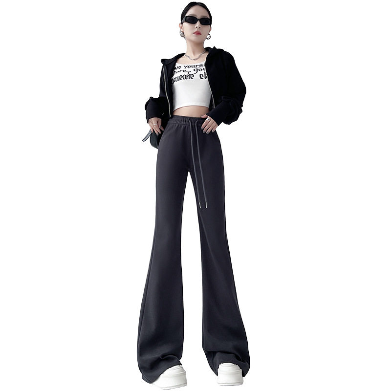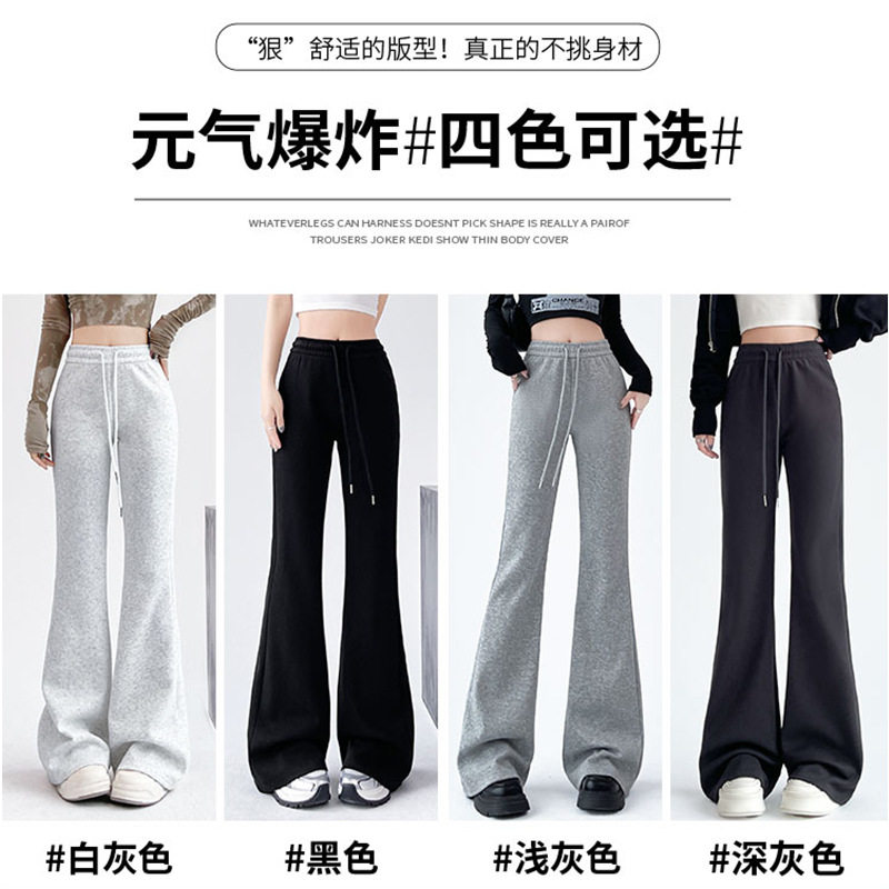 小个子超好看的微喇运动裤女款2026春装新款高腰休闲直筒喇叭裤子