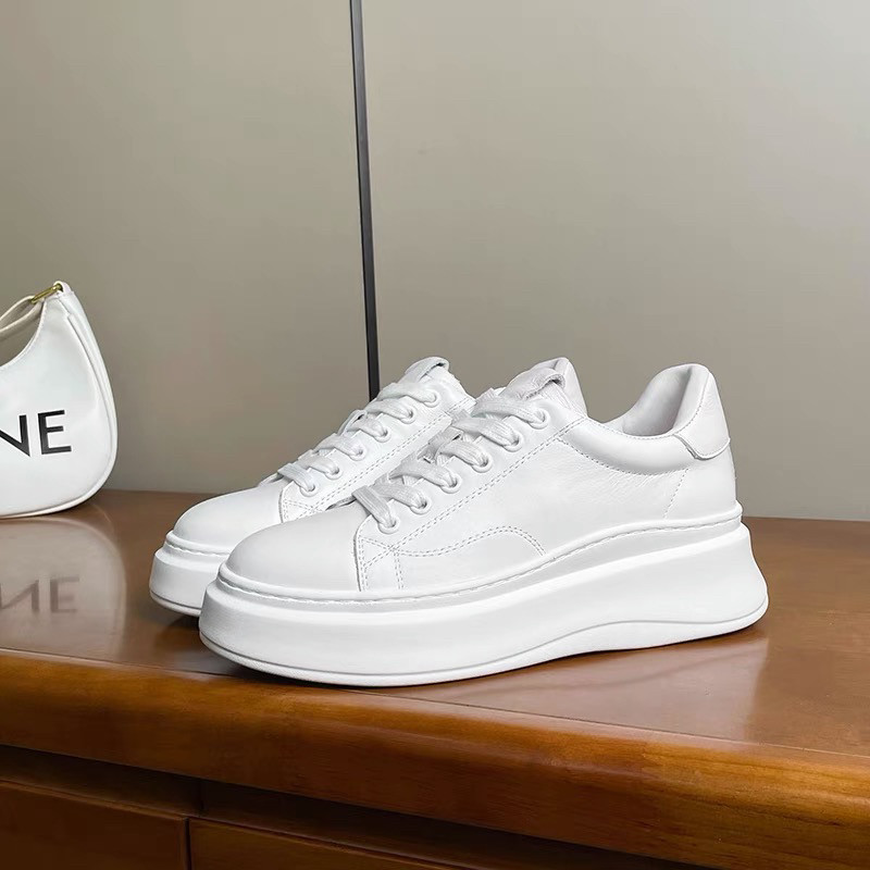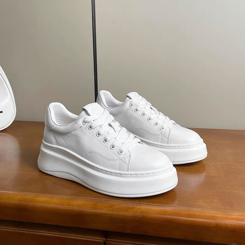 手工~超轻~欧货头层牛皮小白鞋女厚底真皮简约百搭休闲系带松糕鞋