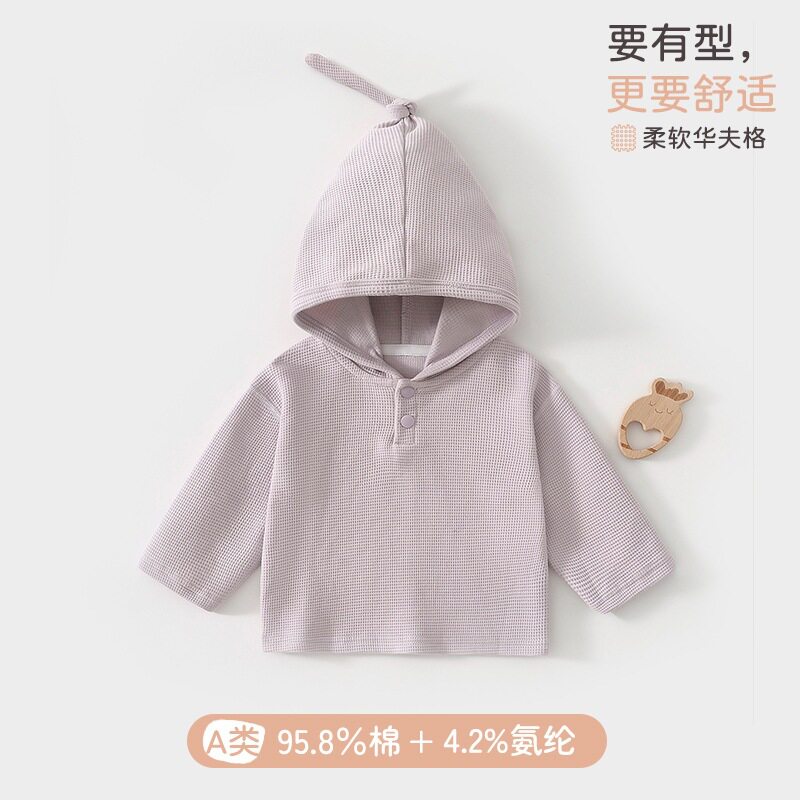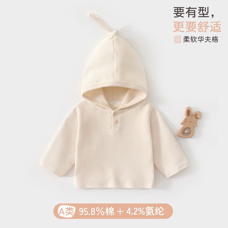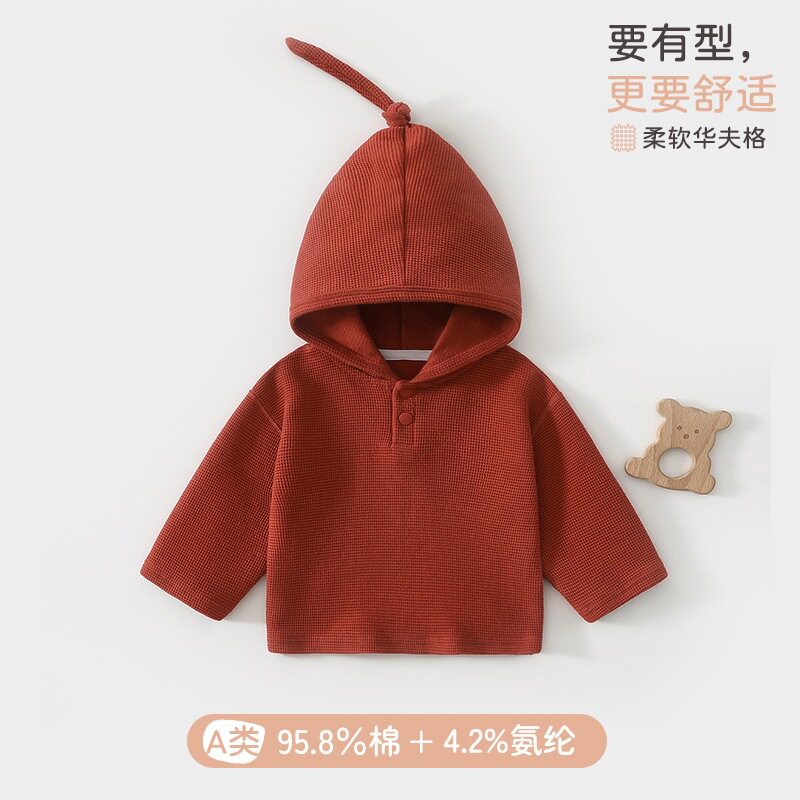 Hengbaby宝宝卫衣春秋a类纯棉华夫格男女童精灵帽连帽套头衫婴儿