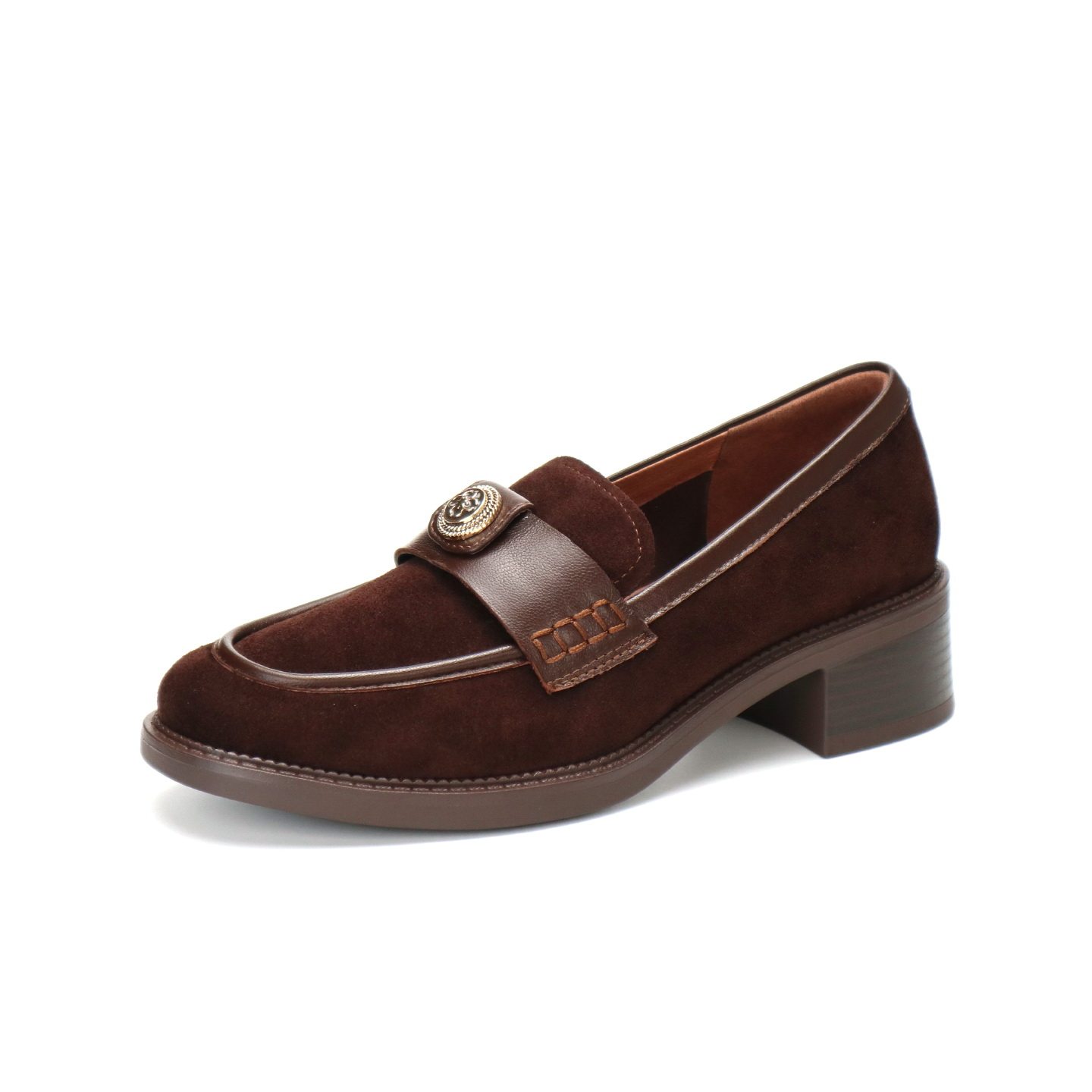 KISSCAT接吻猫2026新老钱风粗跟厚底乐福鞋真皮黑色皮鞋单鞋女鞋