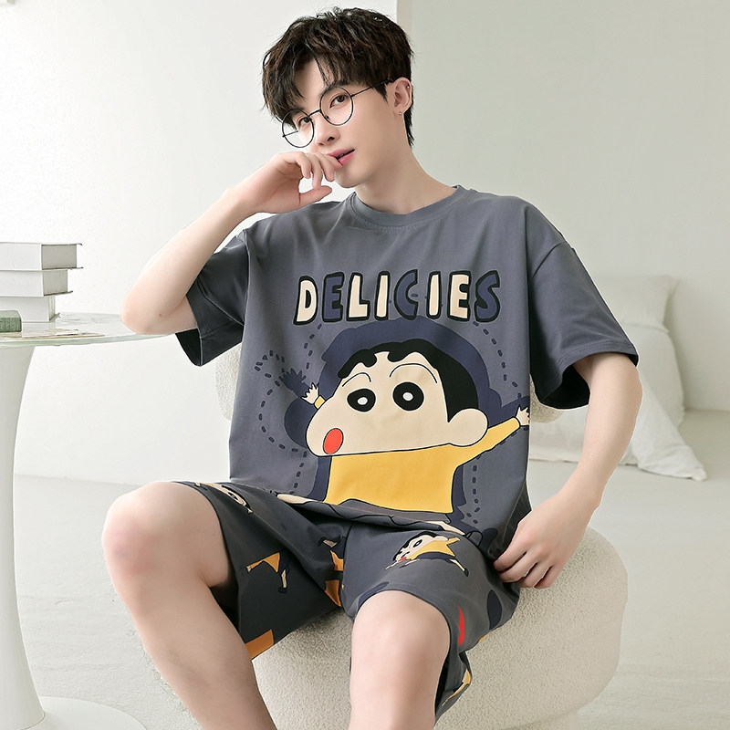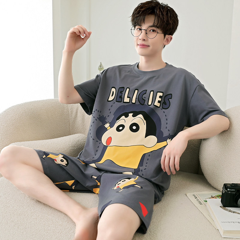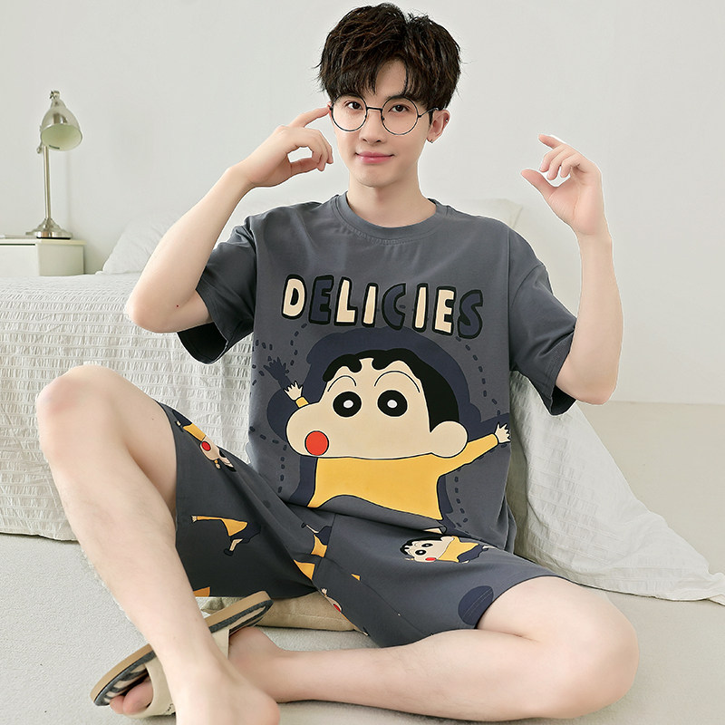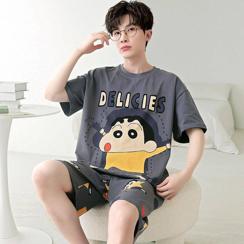纯棉睡衣男款2026新款夏季薄款卡通青少年短袖短裤大码家居服套装