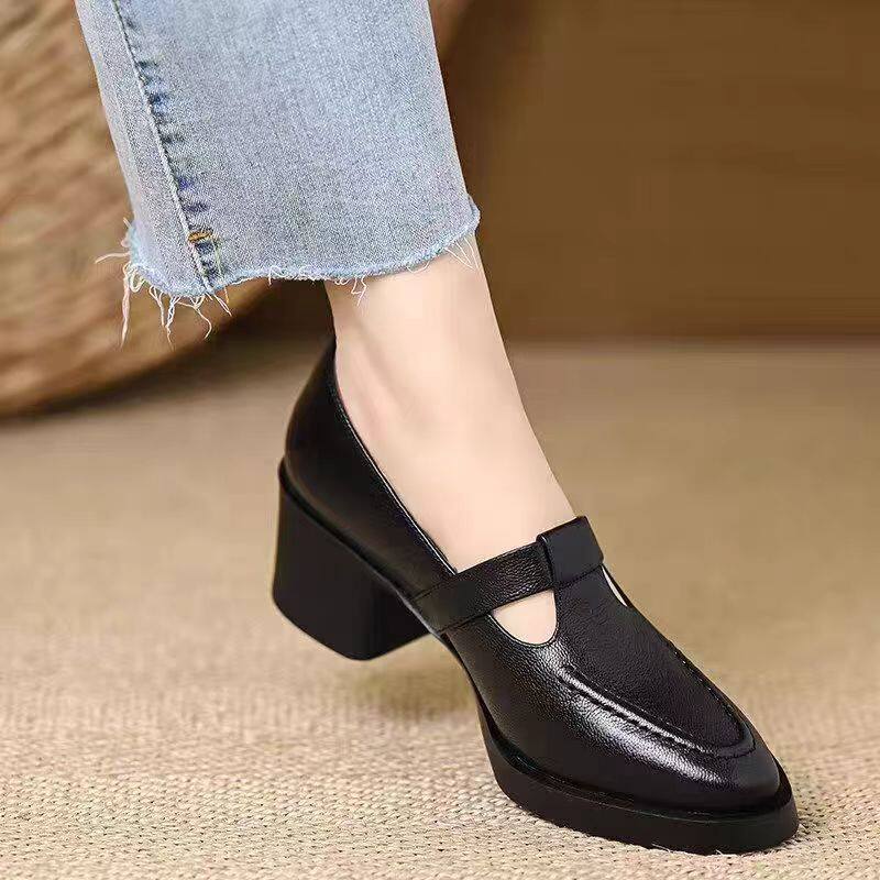 品牌真皮粗跟单鞋女2026春新款法式百搭乐福鞋配裙子英伦风小皮鞋