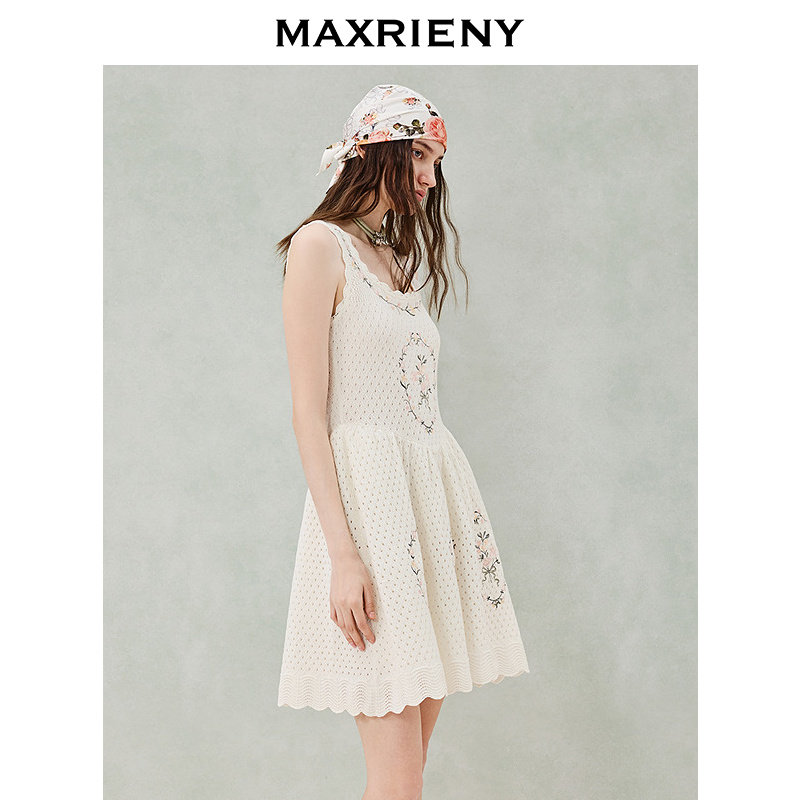 311线报网描述:花卉刺绣吊带针织连衣裙,简约针织组织设计