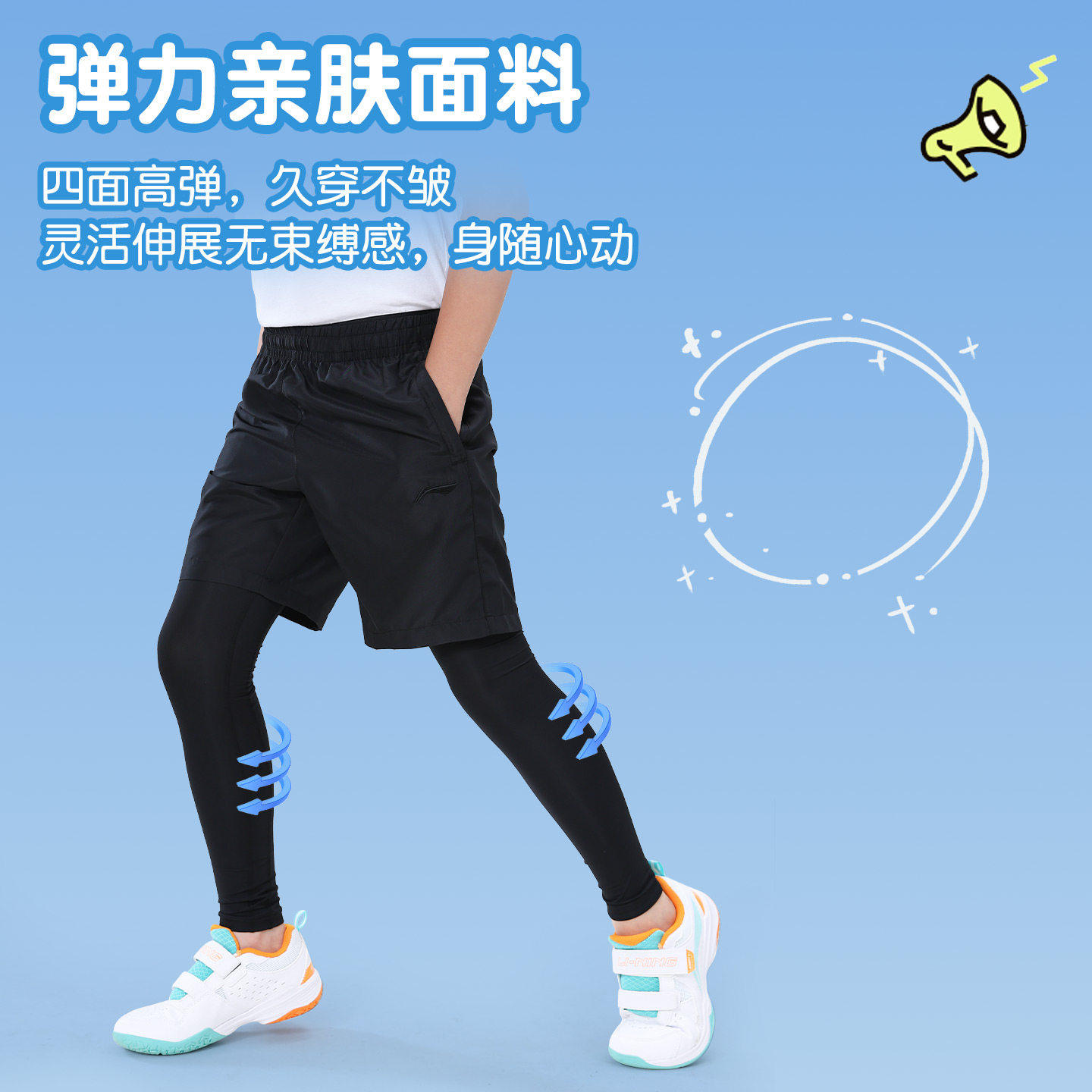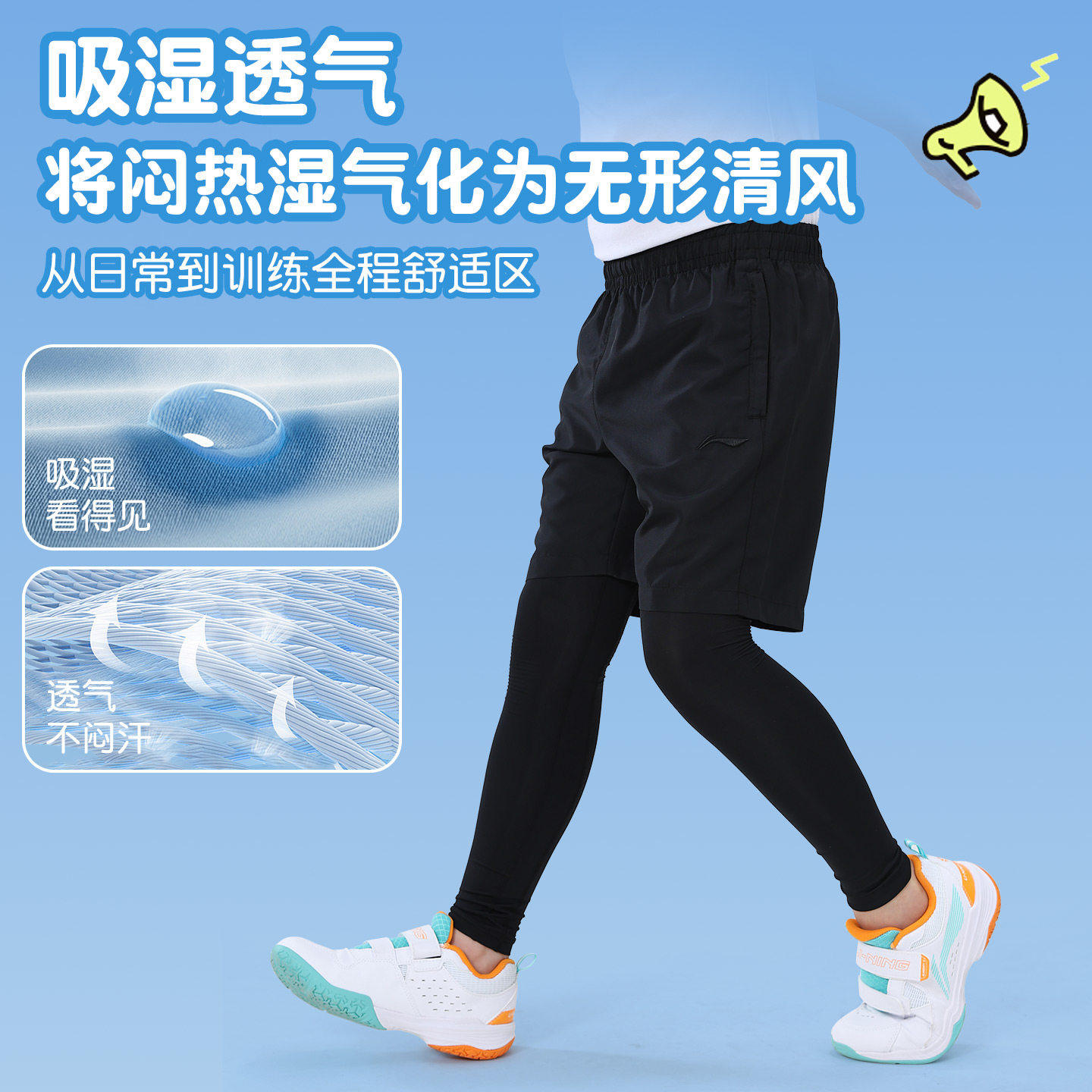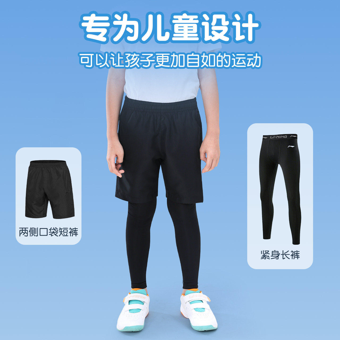 李宁儿童紧身裤男童跳绳篮球训练服打底跑步长裤速干短裤运动套装
