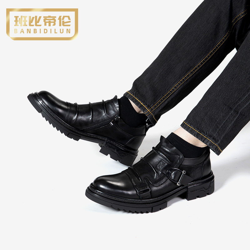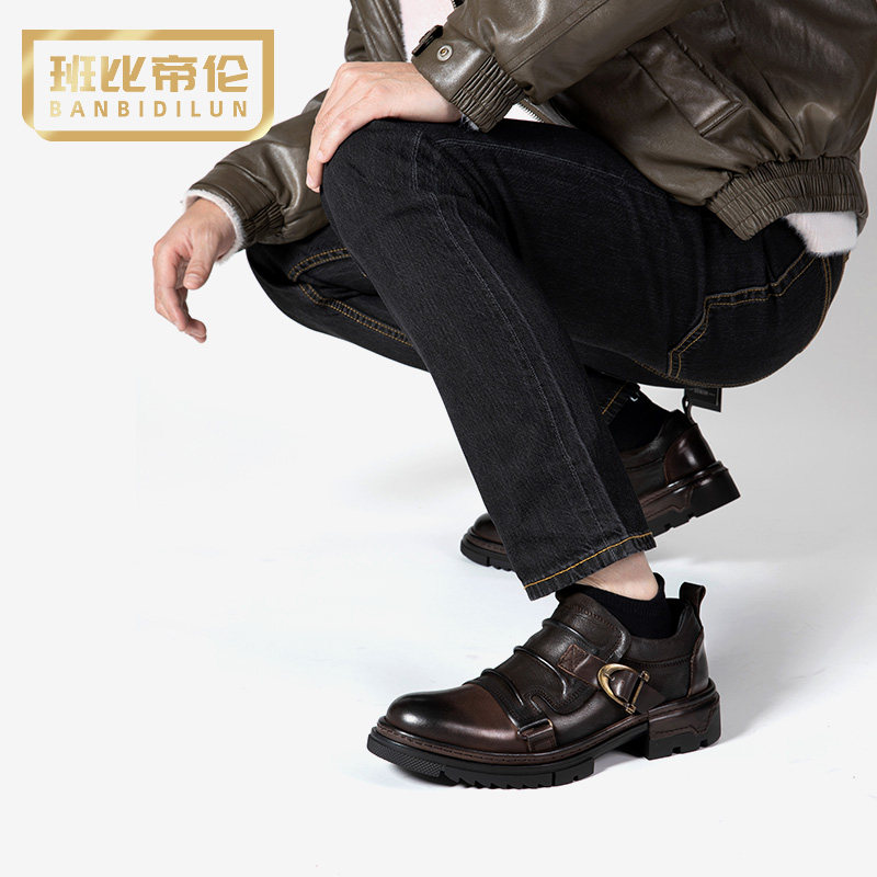 一脚蹬乐福鞋男真皮复古机车切尔西马丁靴手工休闲皮鞋男英伦厚底