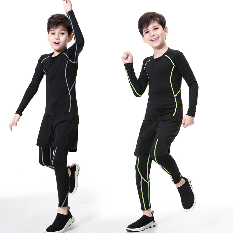 儿童紧身衣训练服男童篮球足球打底速干衣秋冬运动套装跑步健身服