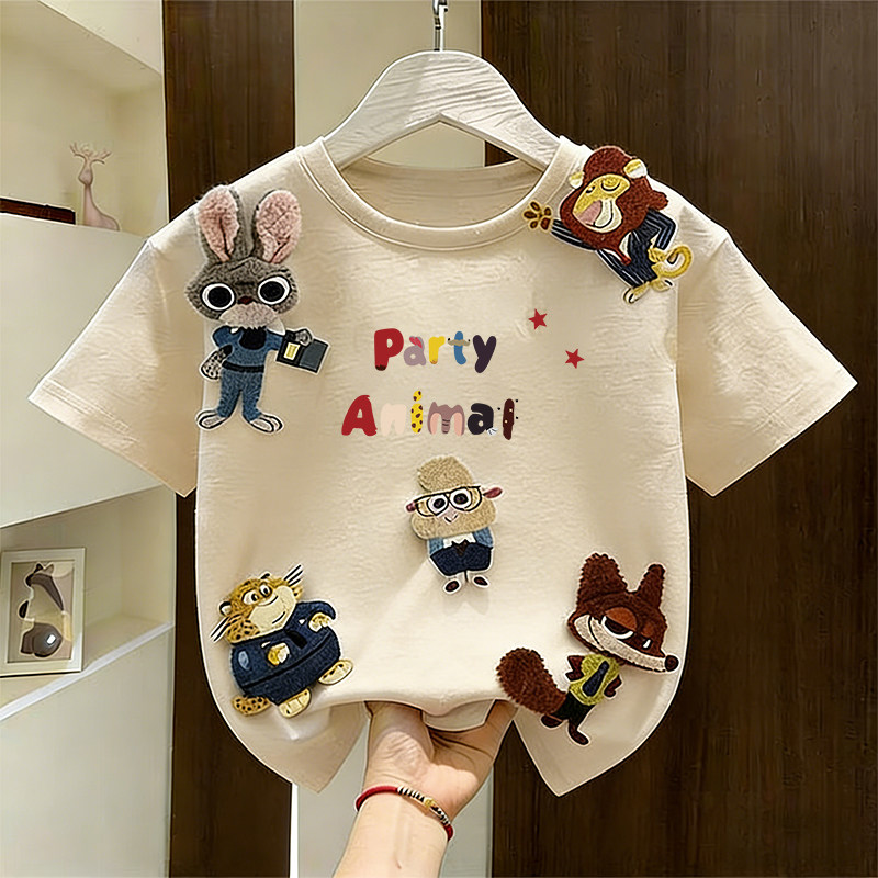 儿童立体玩偶疯狂动物娃娃短袖T恤纯棉夏季中大童宽松男女童上衣