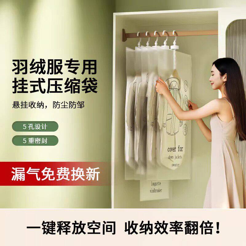 可挂式羽绒服专用透明收纳袋防尘整理衣物防尘罩大号抽真空压缩袋