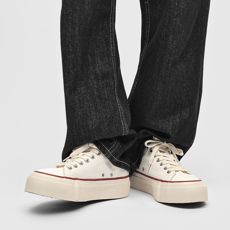 复古厚底硫化帆布鞋男生2026新款夏季透气低帮增高板鞋黑色休闲鞋