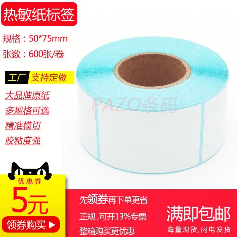 三防热敏纸不干胶75x50mmx500张 整箱空白热敏标签纸5x7.5cm竖版