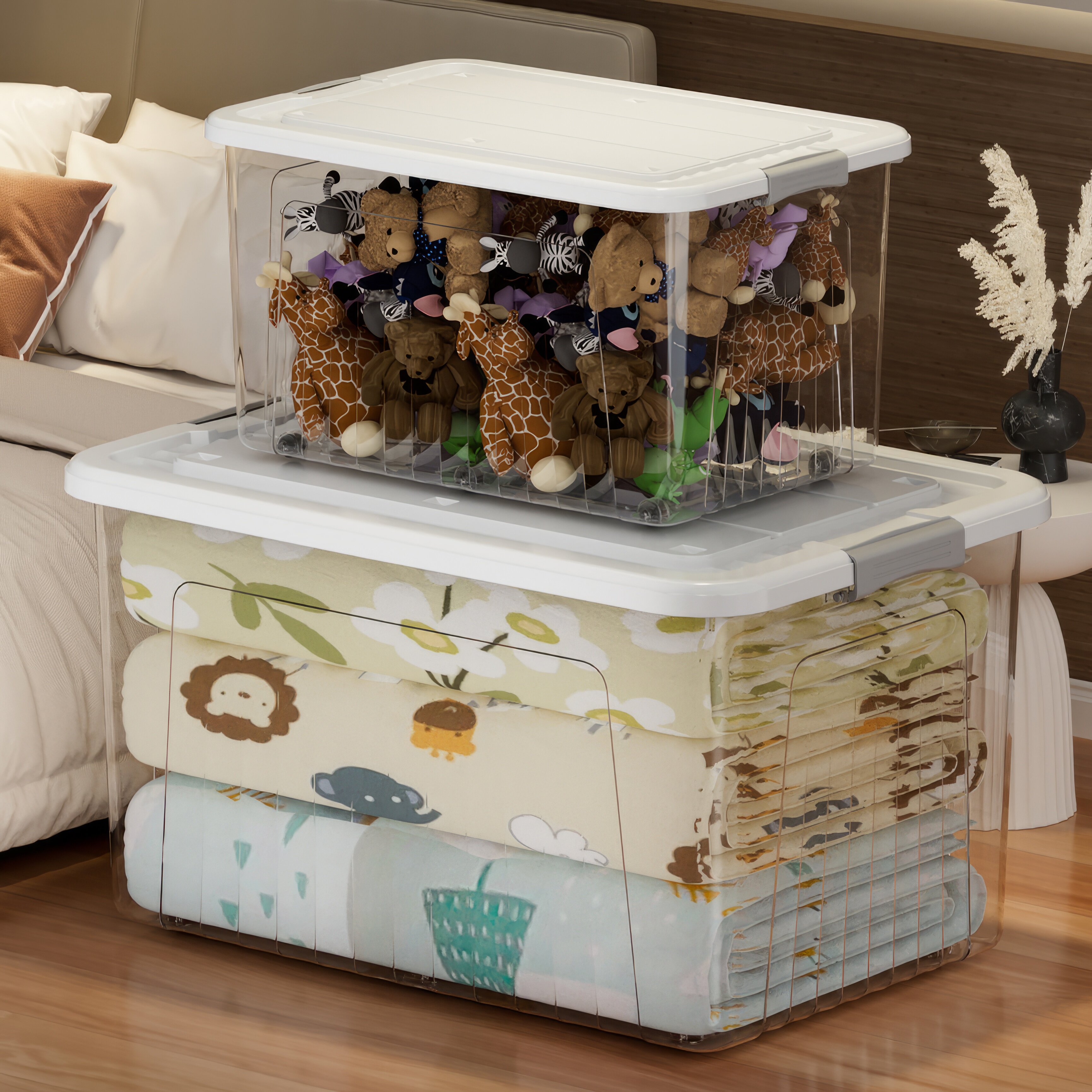 超大容量透明可视储物箱密封防潮加厚带盖耐用收纳箱防潮防尘收纳