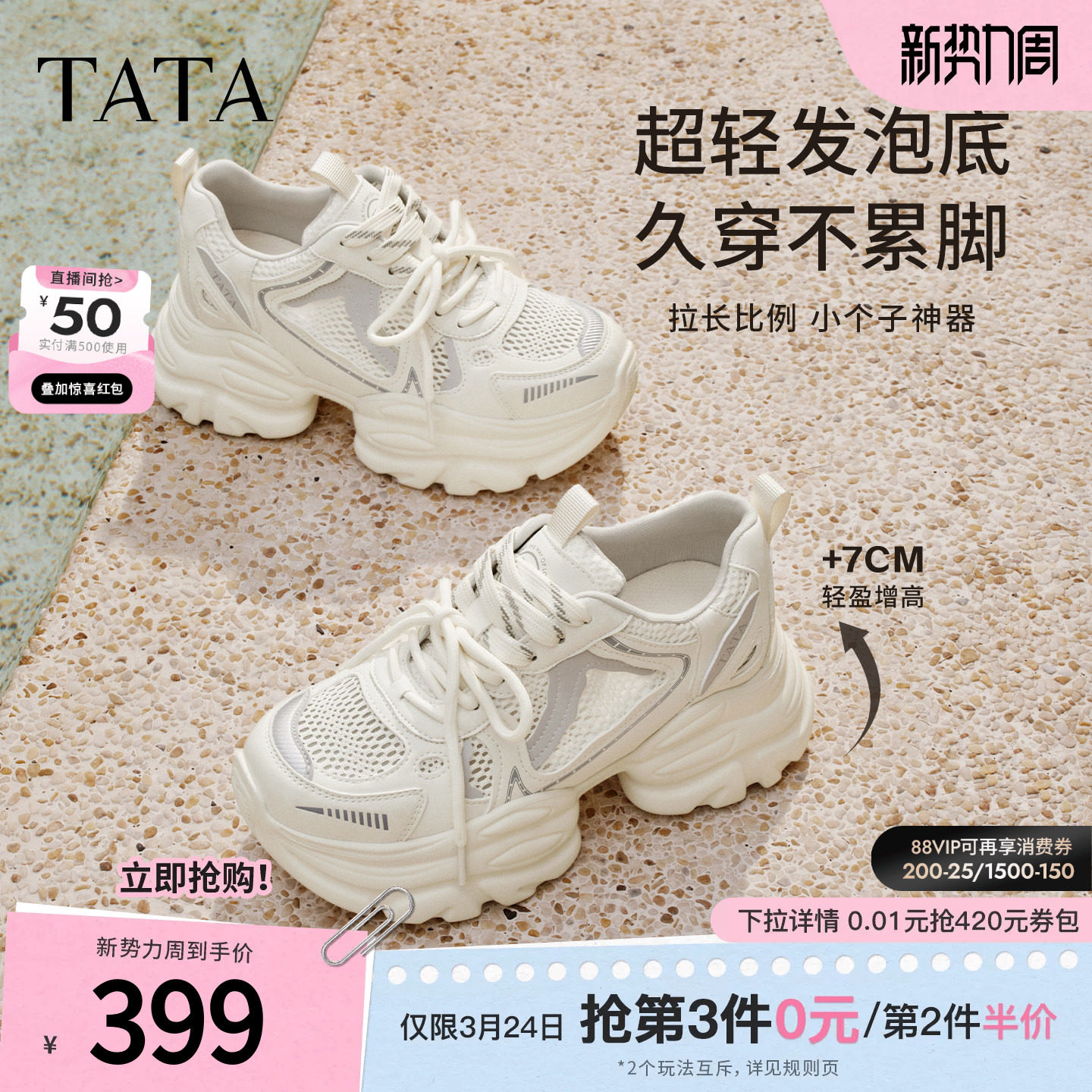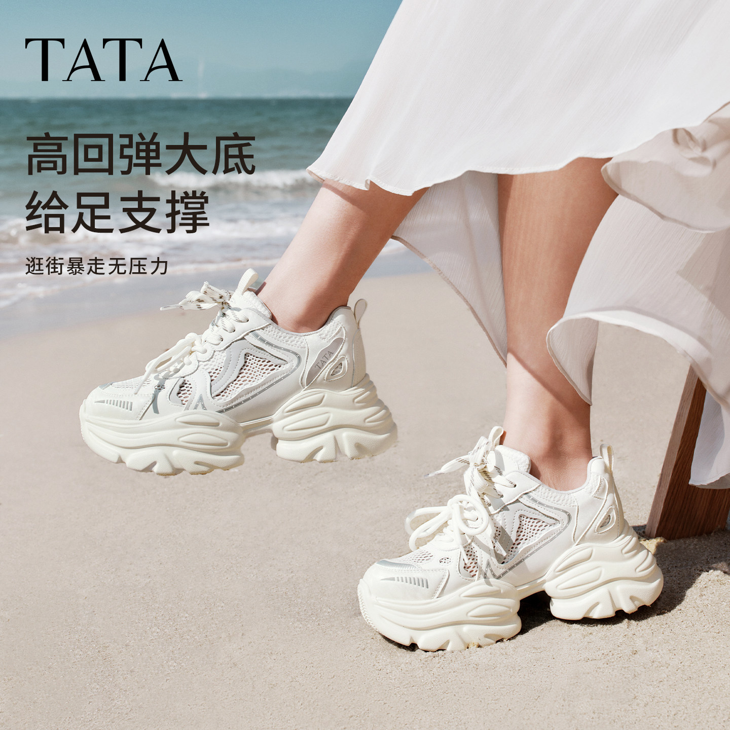 TATA他她女鞋夏季新款网面运动鞋炸街厚底百搭透气老爹鞋CY216BM6