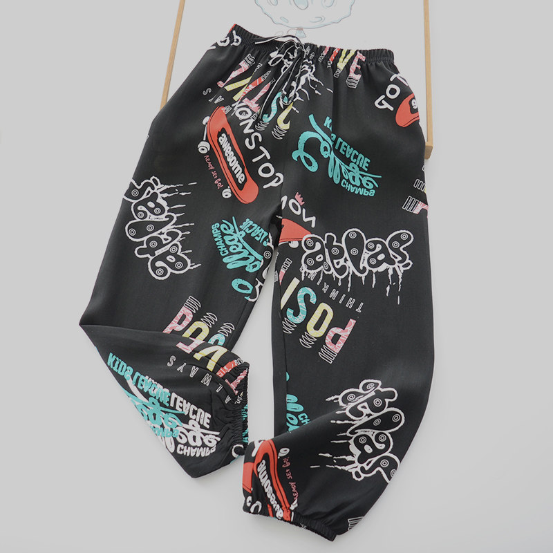 夏季儿童男童人造棉裤子 宝宝棉绸防蚊裤 中大童宽松空调裤家居裤