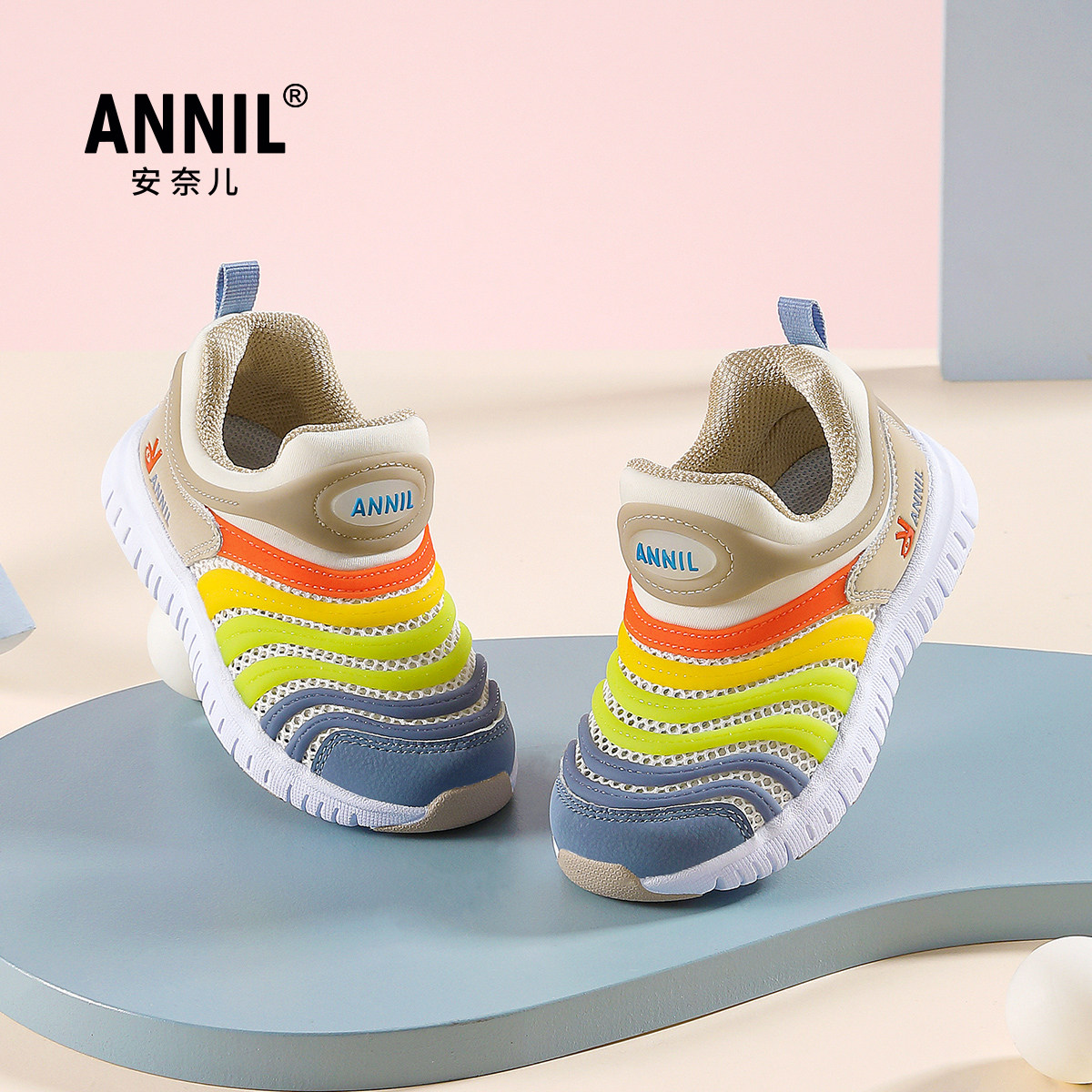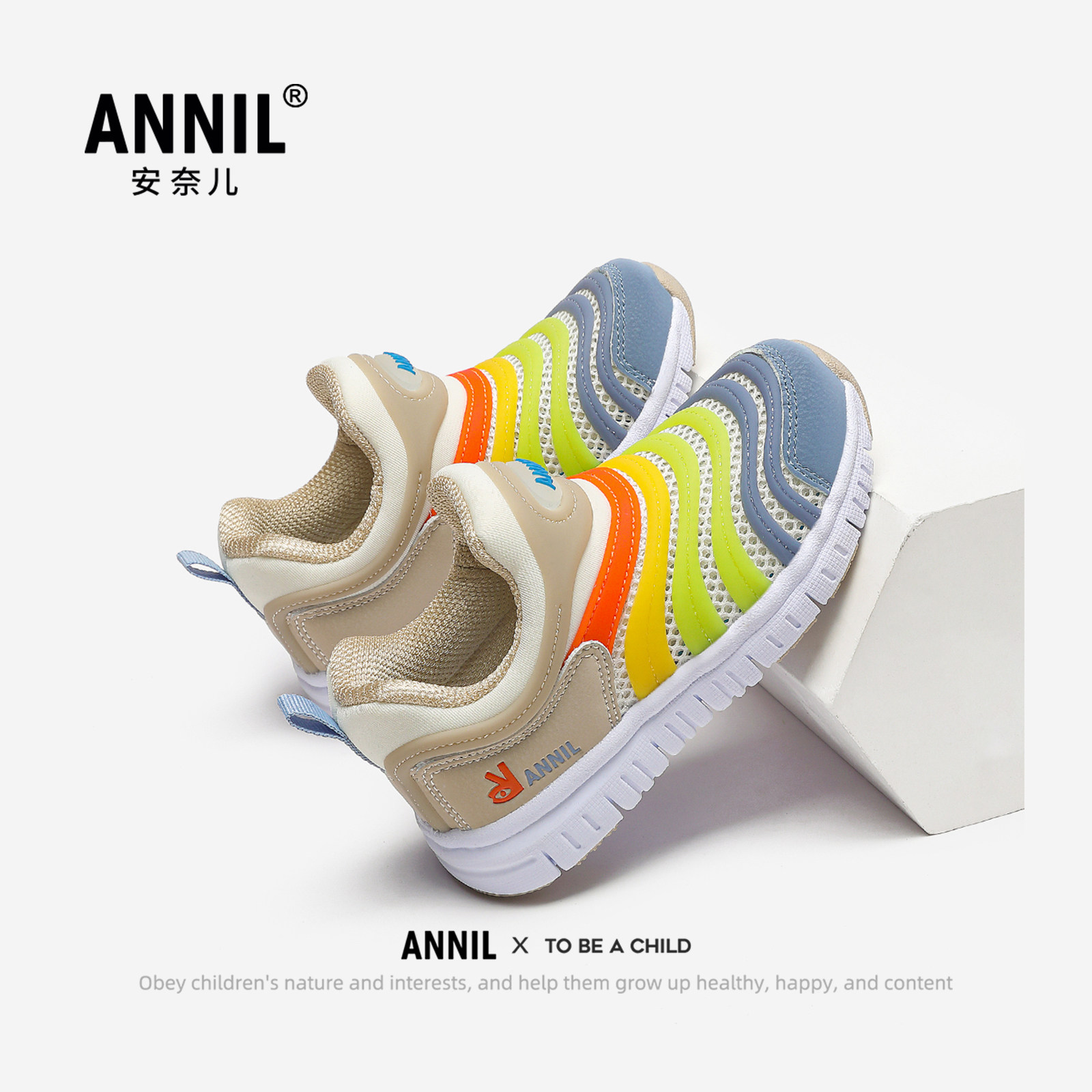 安奈儿宝宝鞋子男童鞋2026新款春秋透气一脚蹬毛毛虫鞋儿童运动鞋