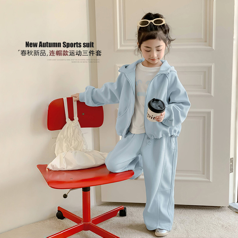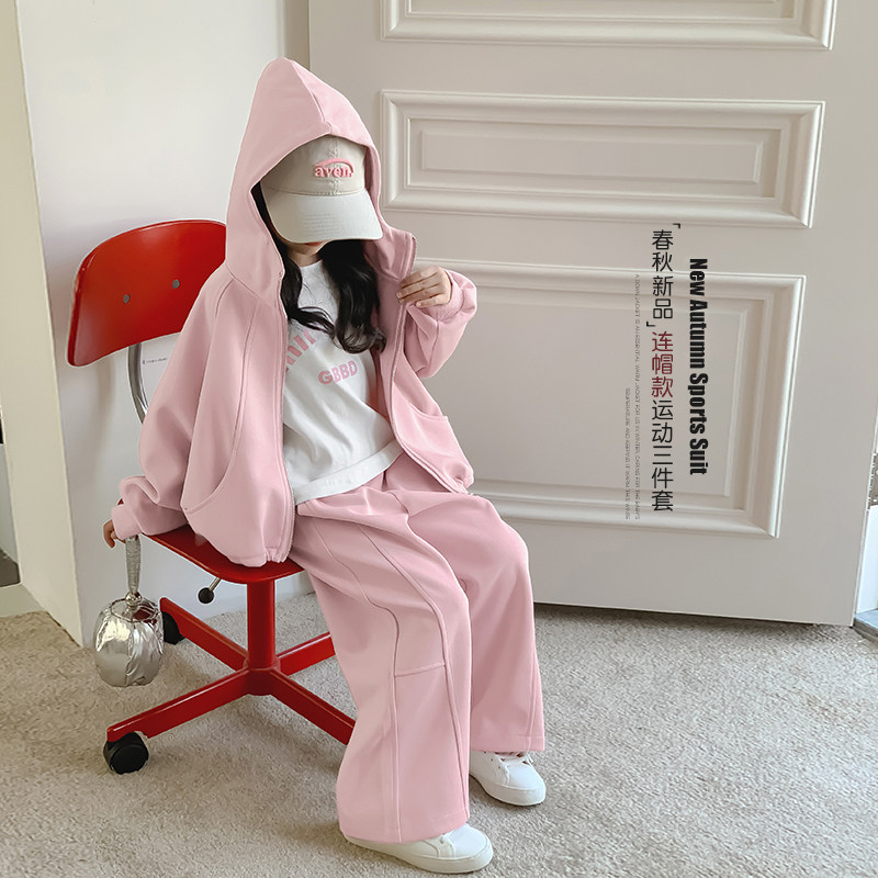 女童套装春装2026新款童装卫衣外套洋气时髦儿童装春季运动三件套