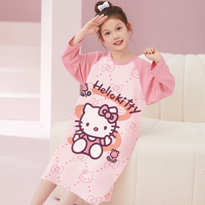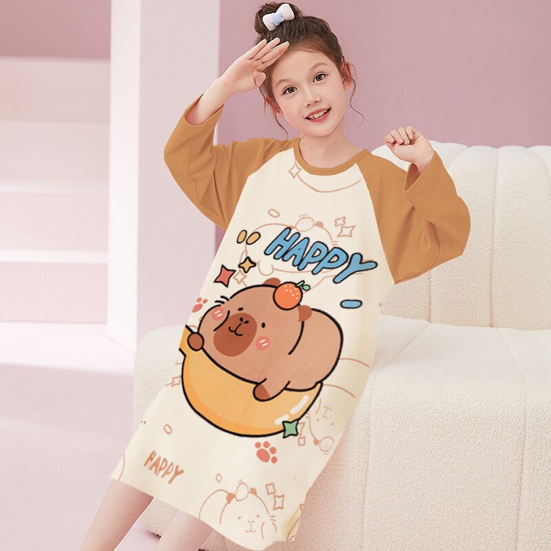 儿童睡裙女童秋季长袖女孩初中生帕恰狗卡通连衣裙2025纯棉家居服