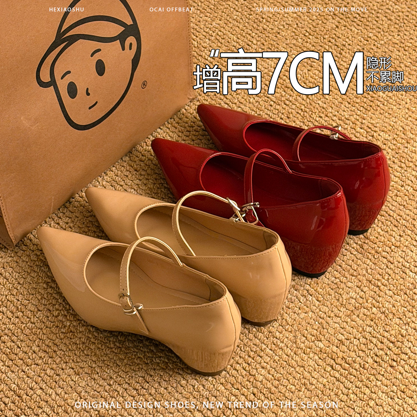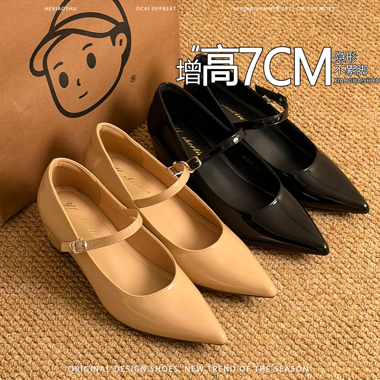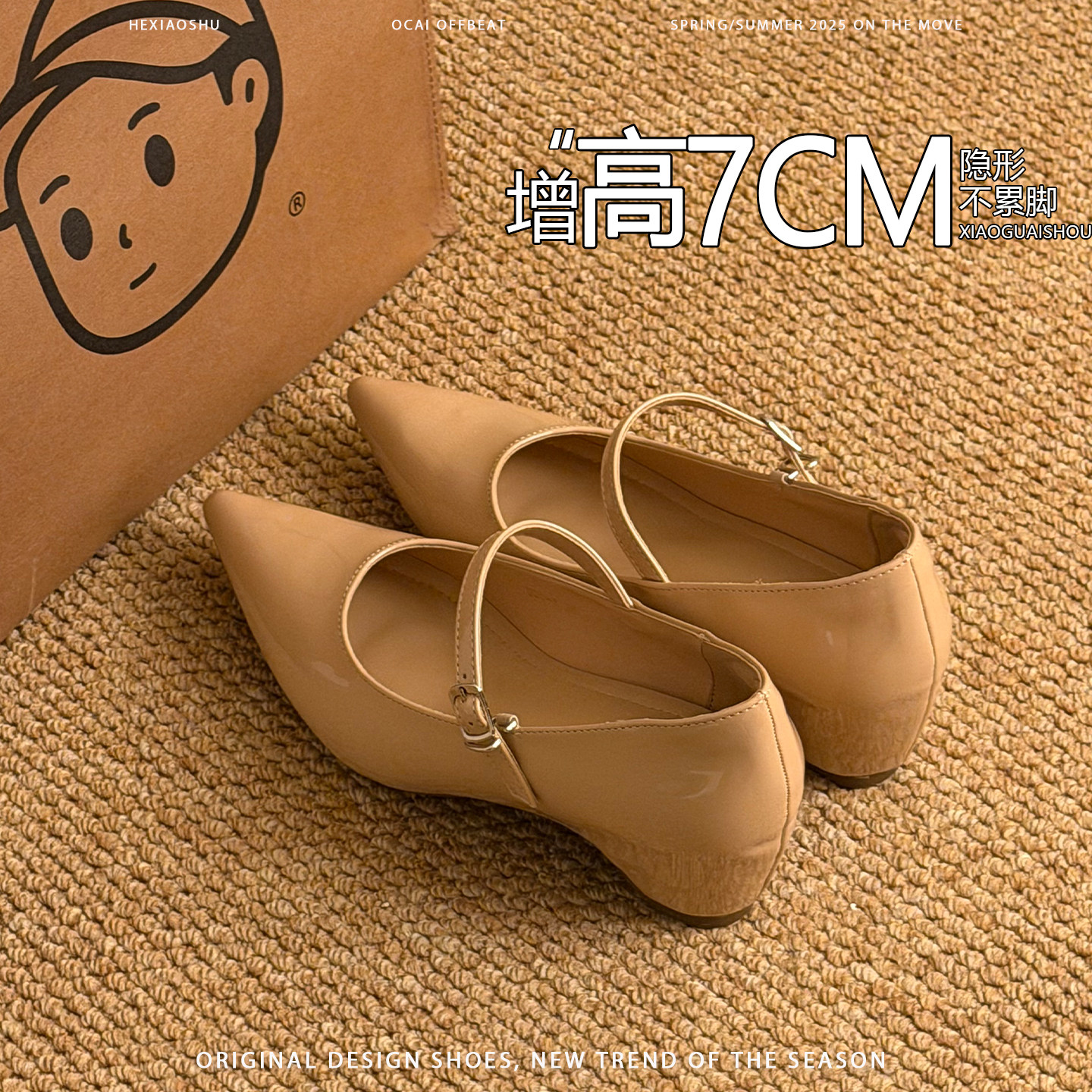 法式气质尖头内增高玛丽珍鞋女2026新款不累脚一字带通勤浅口单鞋
